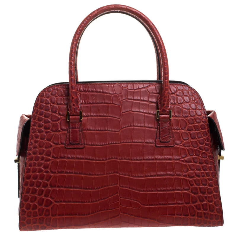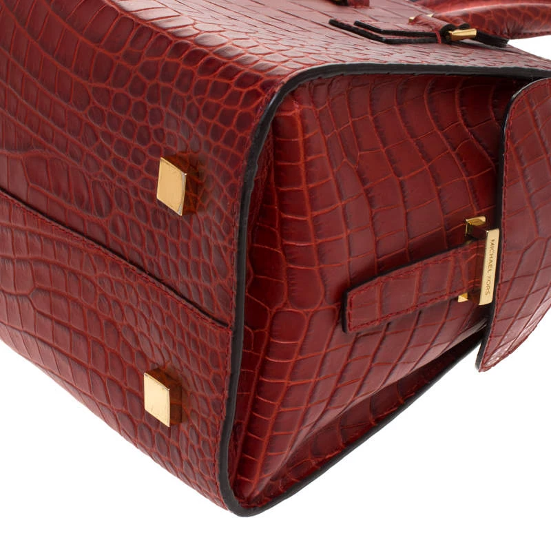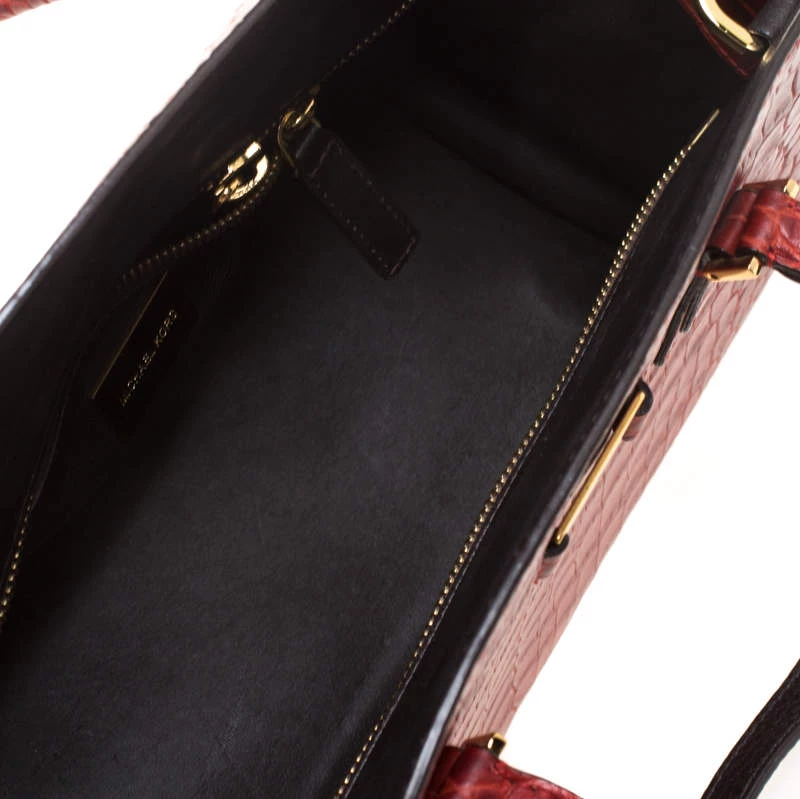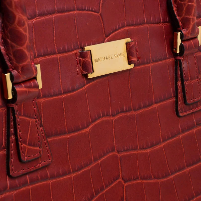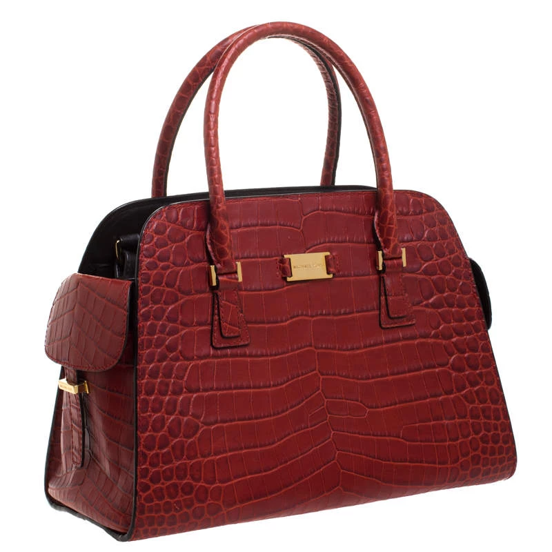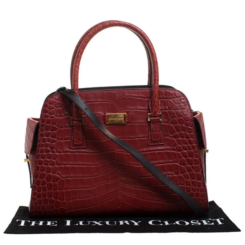 Michael Kors brings you this handy bag that will dutifully hold all your necessities. It has been crafted from croc-embossed leather and features dual handles. The interior is spacious and houses a zip pocket. This satchel is your ideal everyday bag.