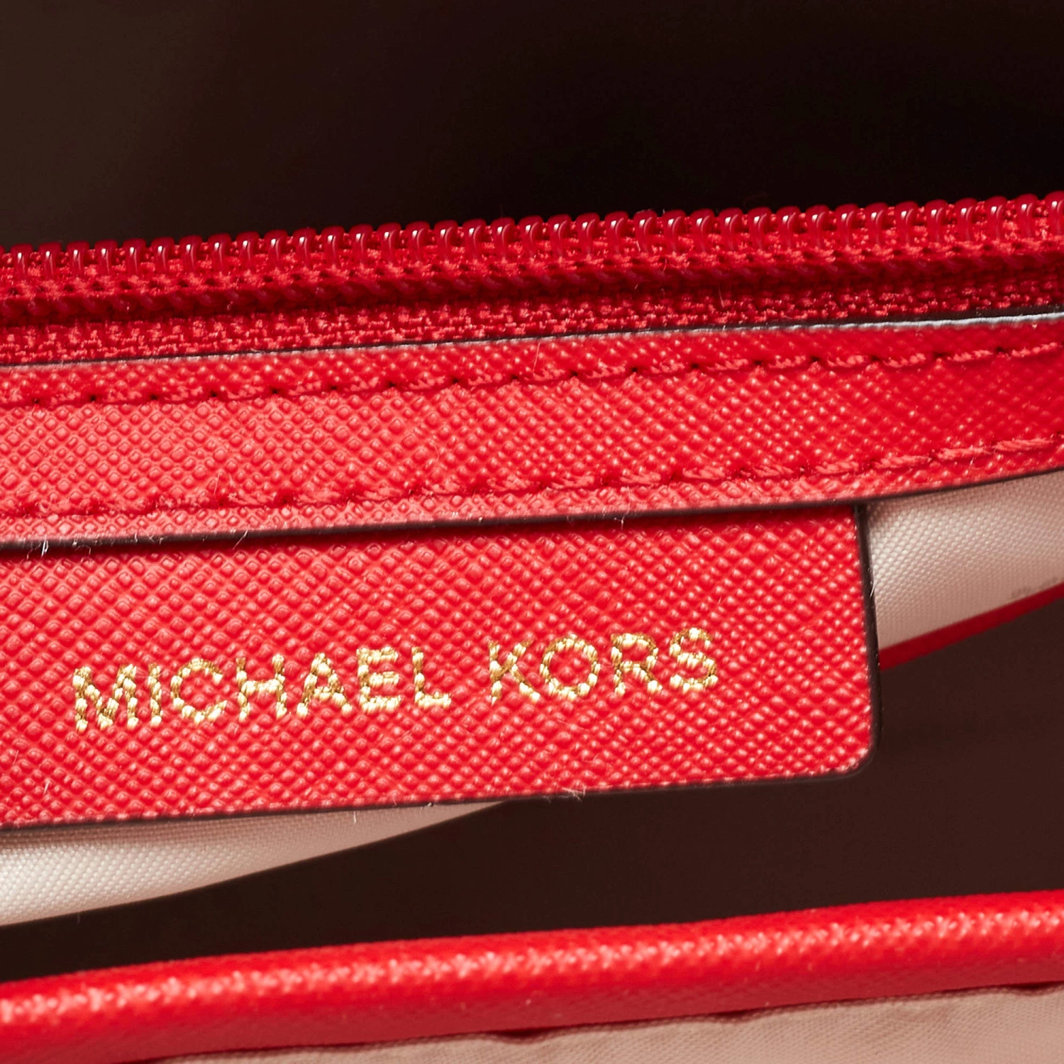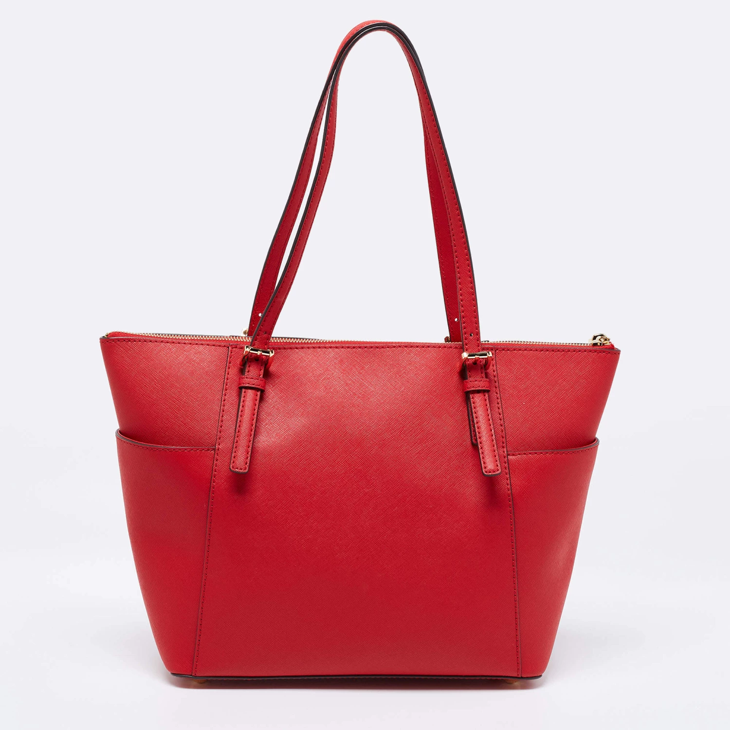 This MICHAEL Michael Kors Jet Set tote has the perfect combination of classy design and practical ease. With a beautiful and striking structure, this leather bag is filled with luxurious details. It exhibits dual handles for you to carry it in a chic way and a spacious interior to hold all your essentials. The brand signature on the front makes it easily recognizable.