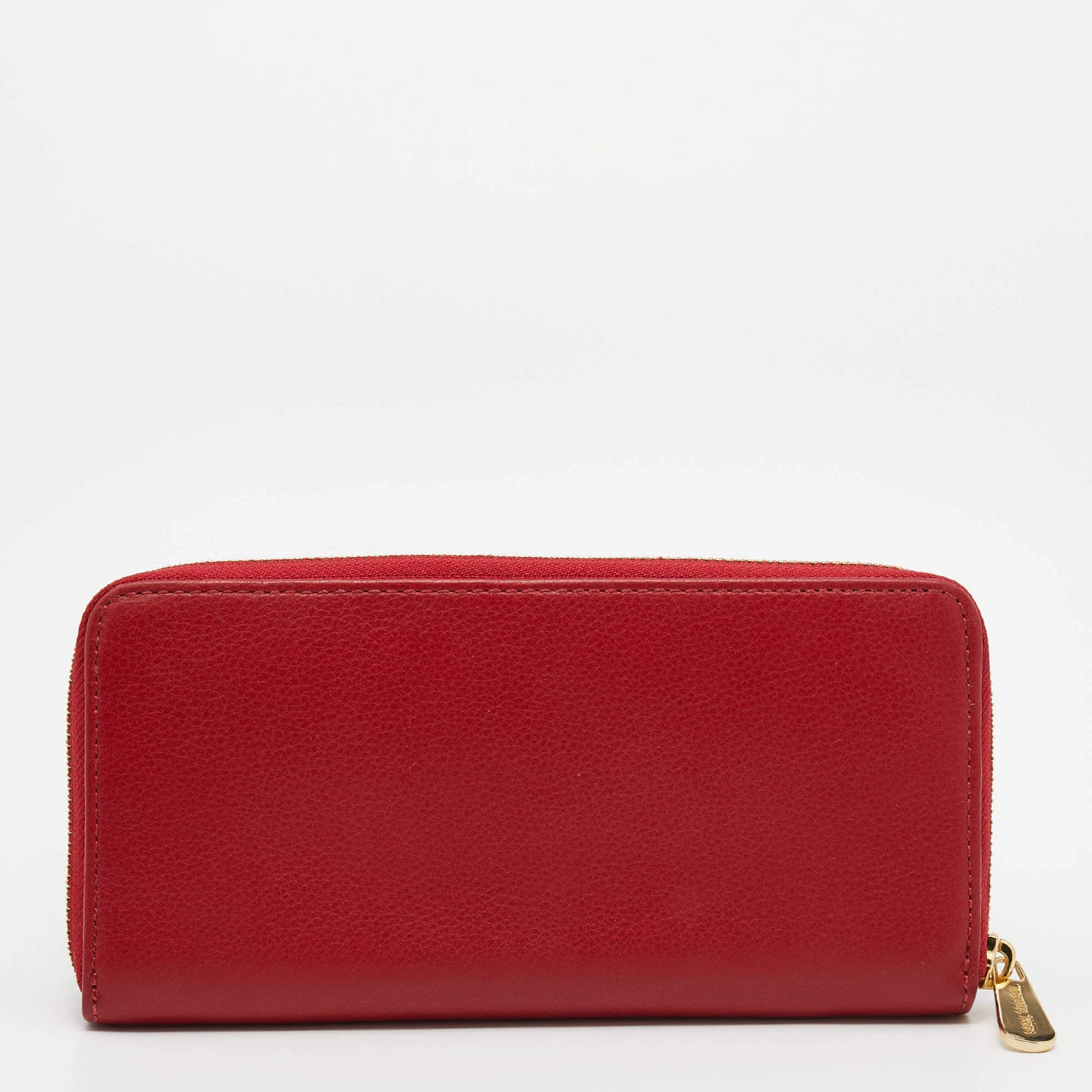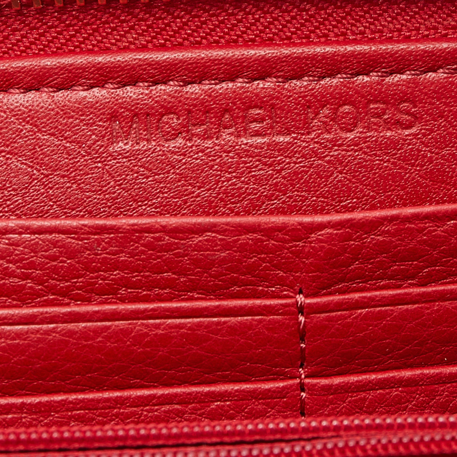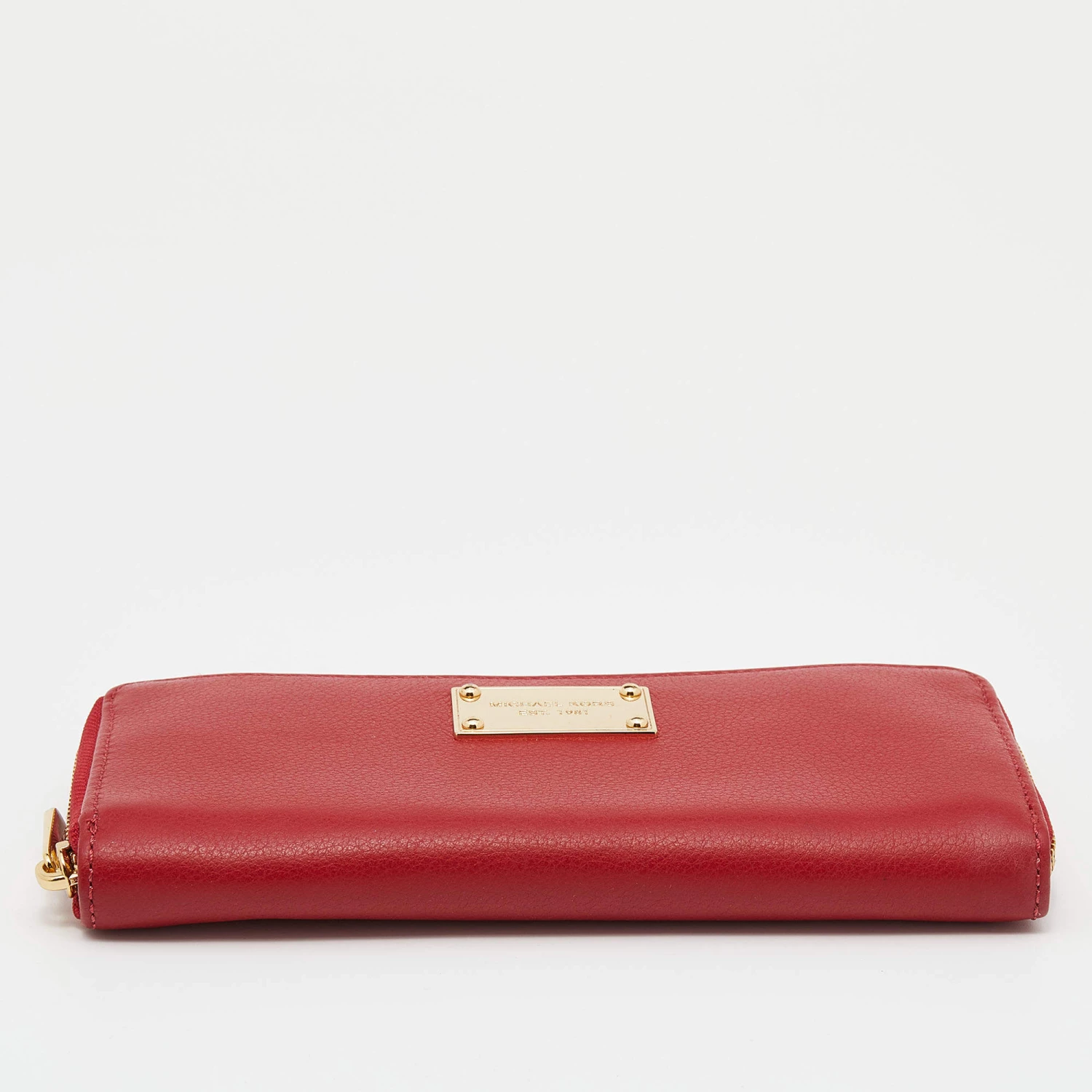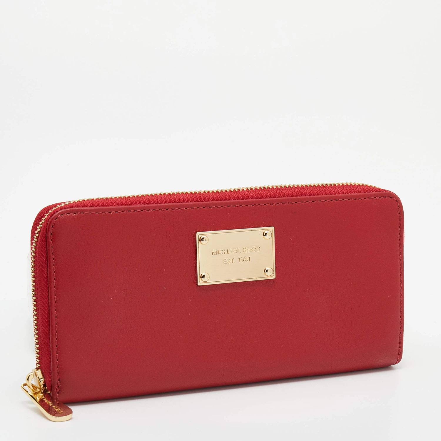 Every woman deserves to have a beautiful wallet in her collection. Crafted from leather, this Jet Set Michael Kors wallet comes with a zip closure that opens to a leather-fabric lined interior housing open compartments for currency and bills and multiple card slots.
