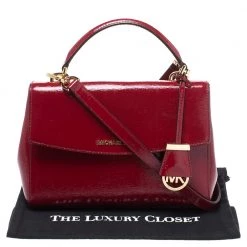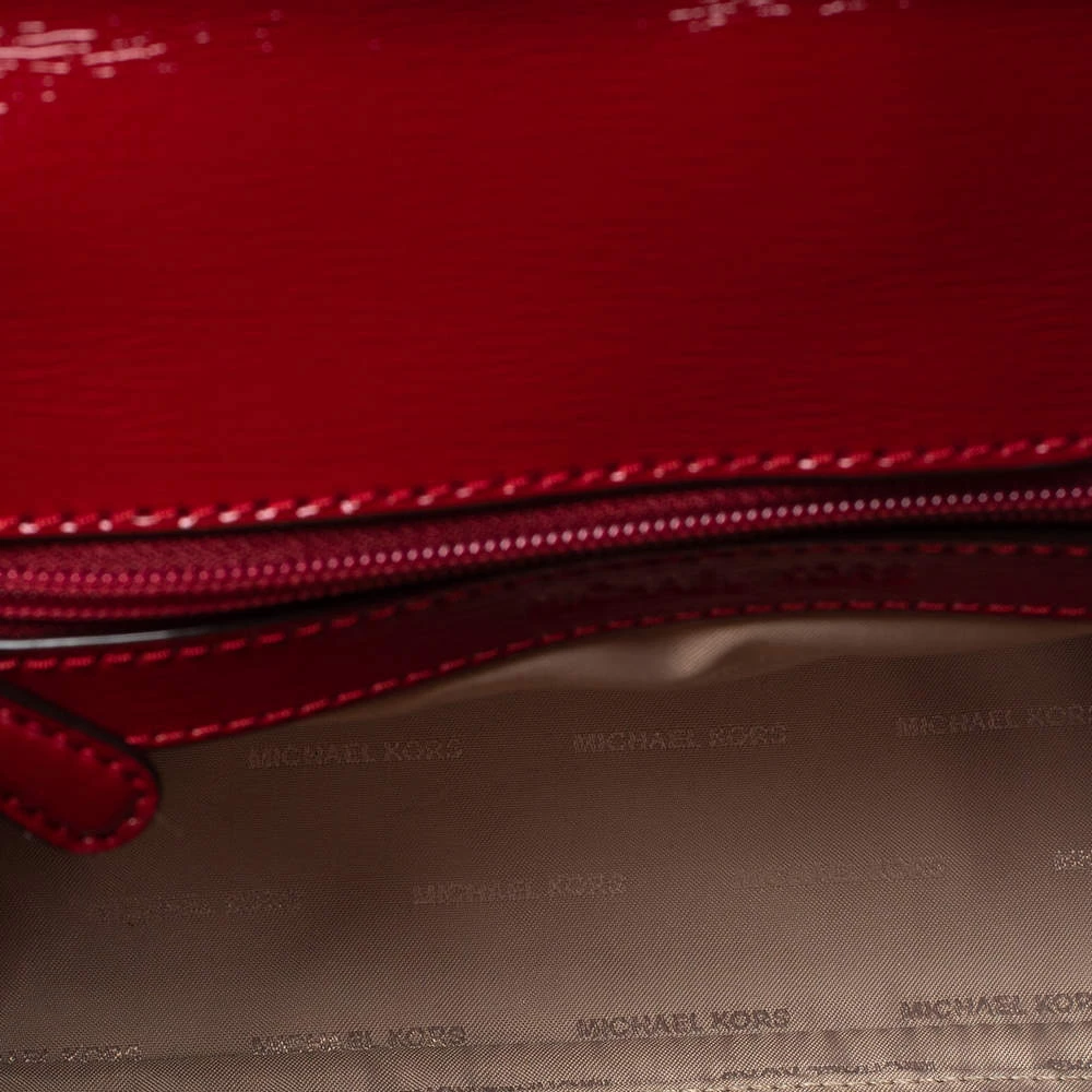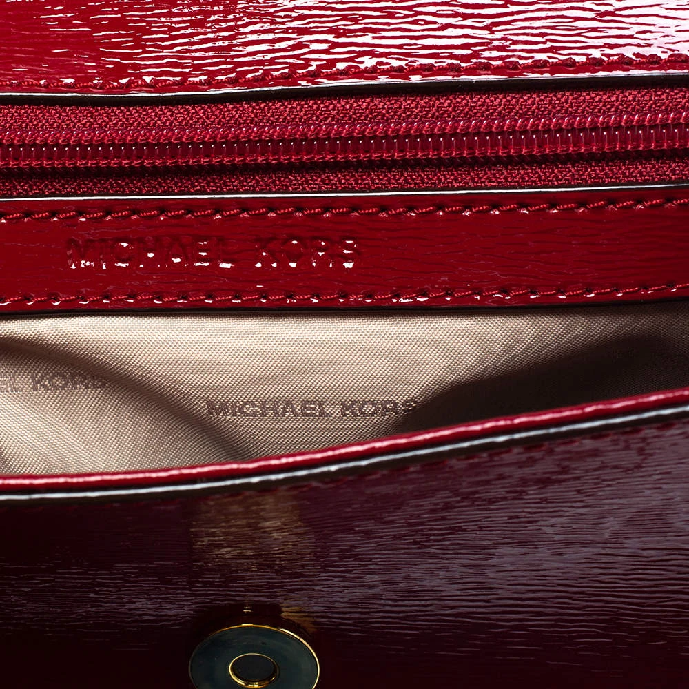 This elegant bag from Michael Kors is a must-have for a fashionista like you! Crafted from red patent leather, it flaunts a sturdy shape and an impeccable design. The creation comes with a top handle and a spacious nylon interior to house your essentials. The gold-tone brand accents add the right amount of sophistication to the bag.