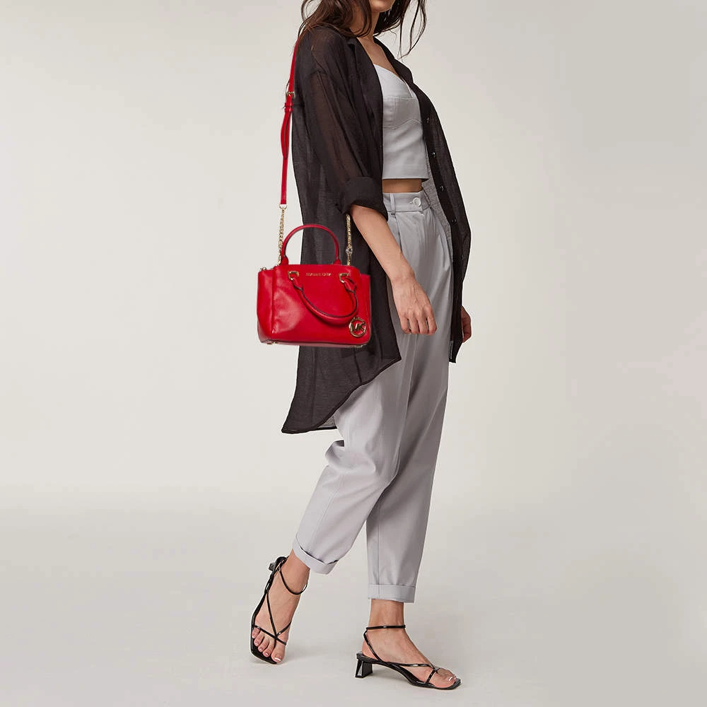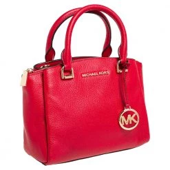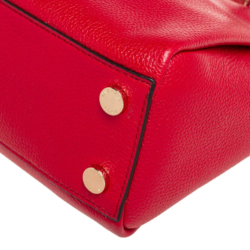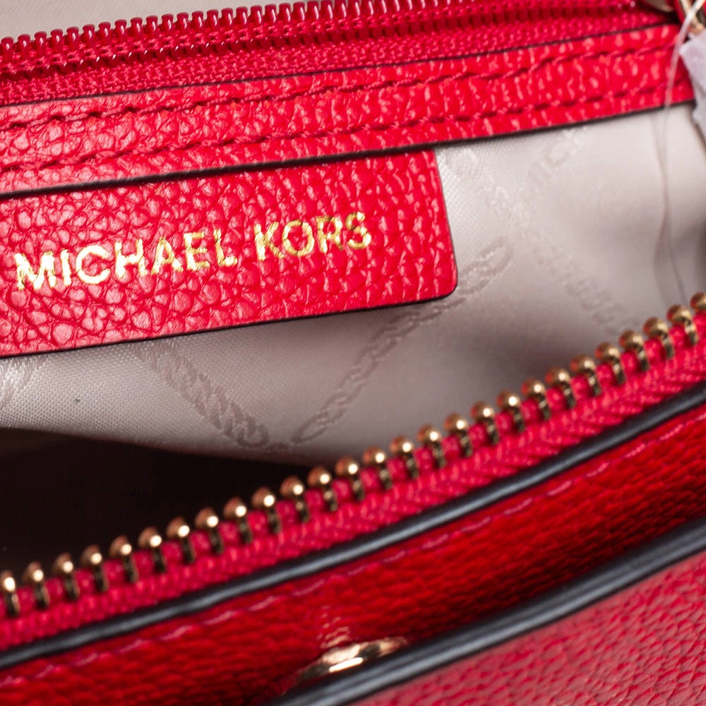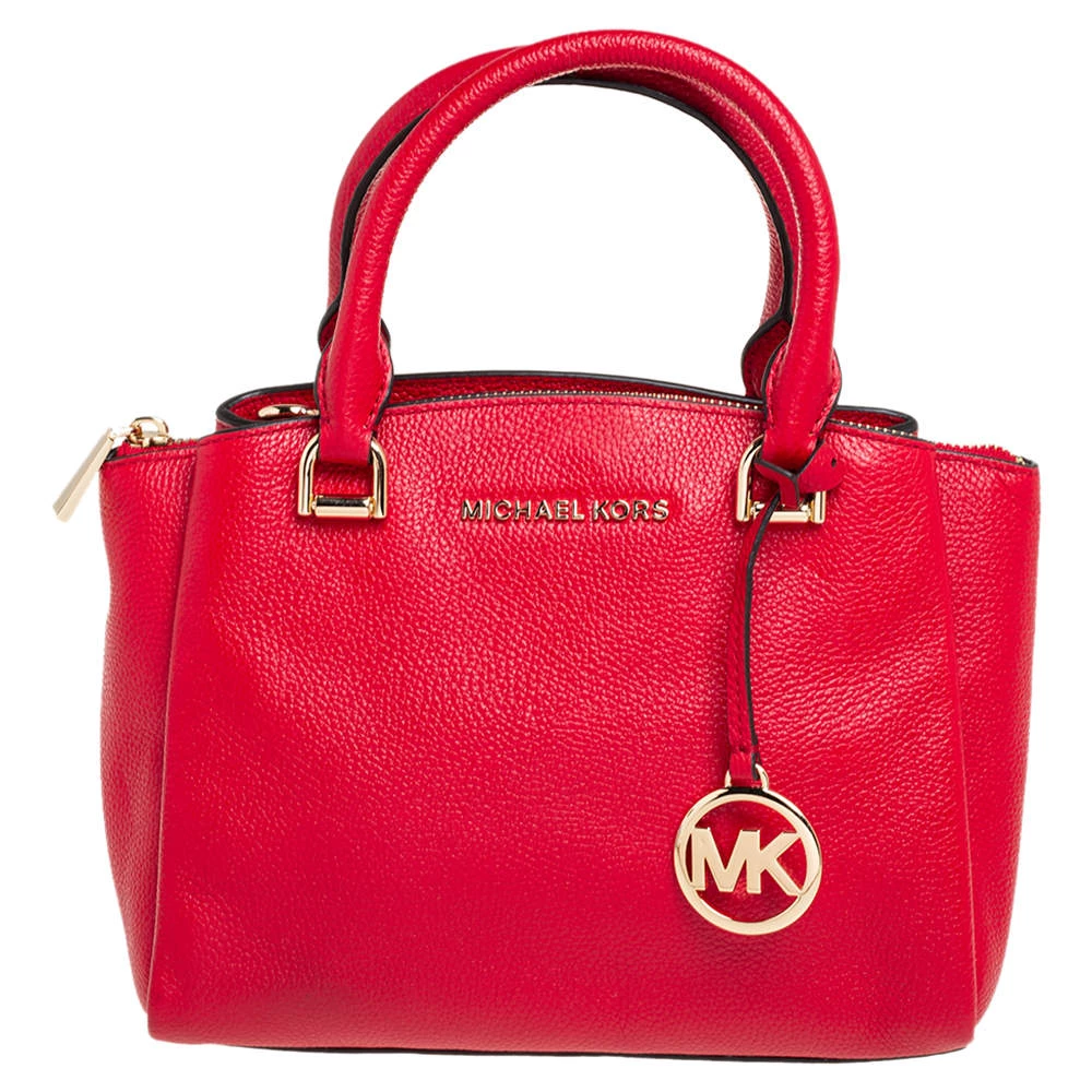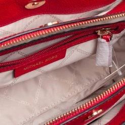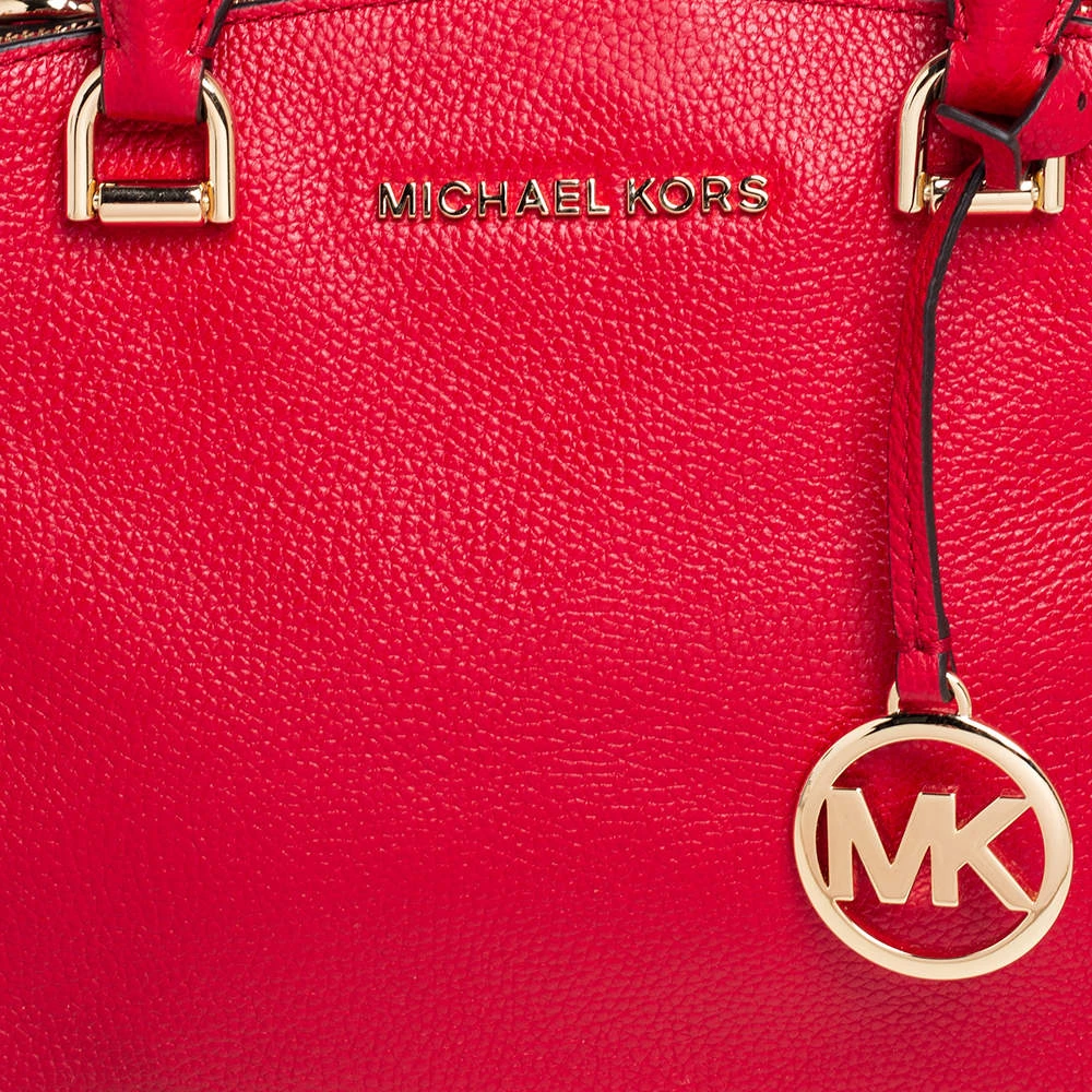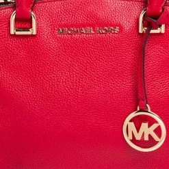 This Michael Kors Maxine satchel is a great accessory for a neutral outfit. Crafted in pebbled leather, this bag comes in a bright shade of red and will make any ensemble pop. With a gold-tone brand name charm and branded nylon interiors, this satchel will definitely become a wardrobe staple.