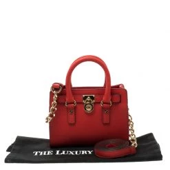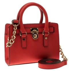 Coming from the house of Michael Kors, this Hamilton Crossbody bag is designed in a luxe red Saffiano leather in a petite boxy silhouette. It comes with two rolled top handles, a detachable shoulder strap and detailed with gold-tone accents. Carry it with a summer dress for weekends.