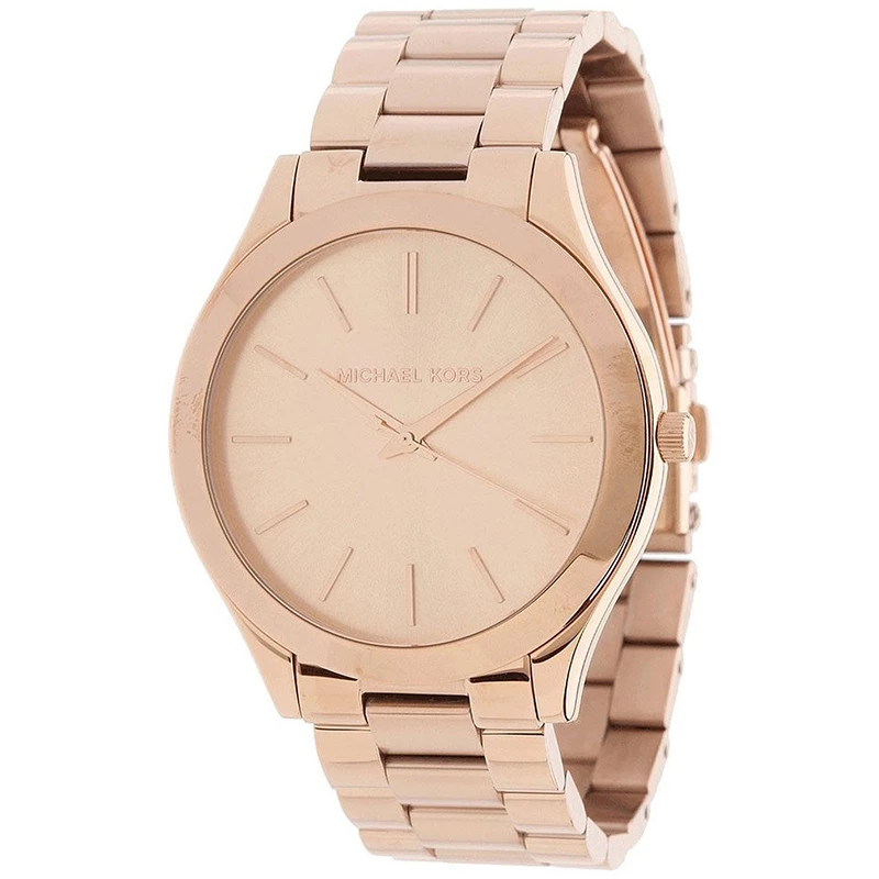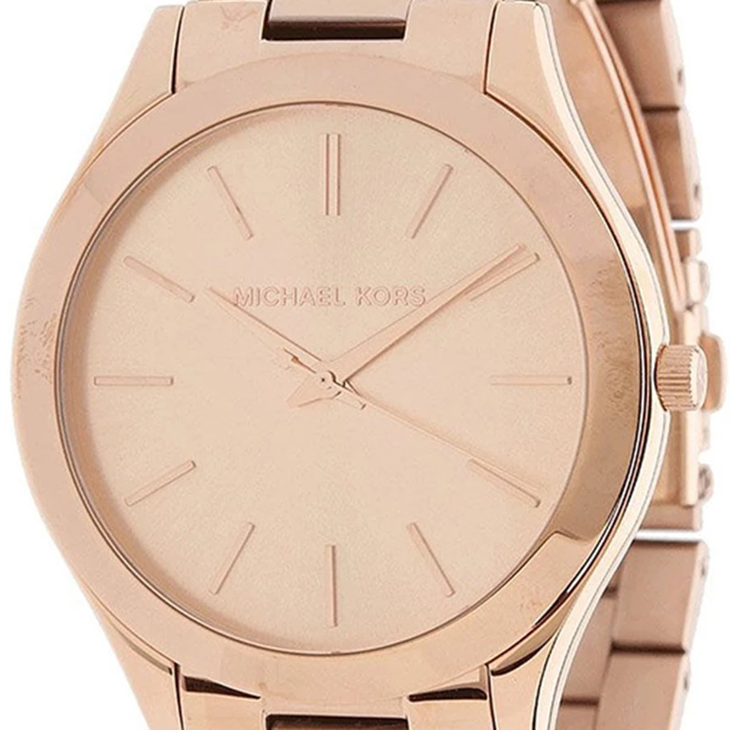 Designed for perfection and everyday ease and classic style, this beautiful Michael Kors Runway wristwatch will take a special place in your collection. Constructed in rose gold plated steel, this beautiful watch features a sleek and elegant design with a simple rose gold dial that can be paired with almost any look.