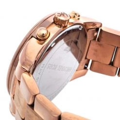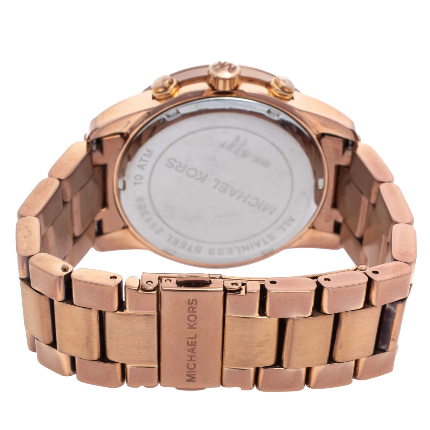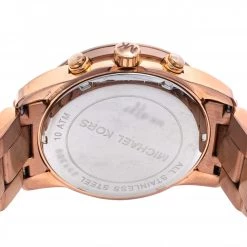 Designed with a fine blend of luxury and craftsmanship, this Mercer watch from Michael Kors is sure to delight your style. Made from rose gold-tone stainless steel, it has a gold dial with a date window and two sub-dials. The smooth bezel, 100 meters water resistance, and push-button clasp make the quartz timepiece ready to be yours.