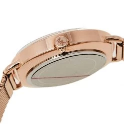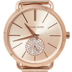 Your everyday style deserves the touch of luxury brought by this wristwatch from Michael Kors. Crafted from rose gold-tone stainless steel, the watch is set with sparkly studs, three hands, and stick markers on the dial. The watch is held by a comfortable bracelet.