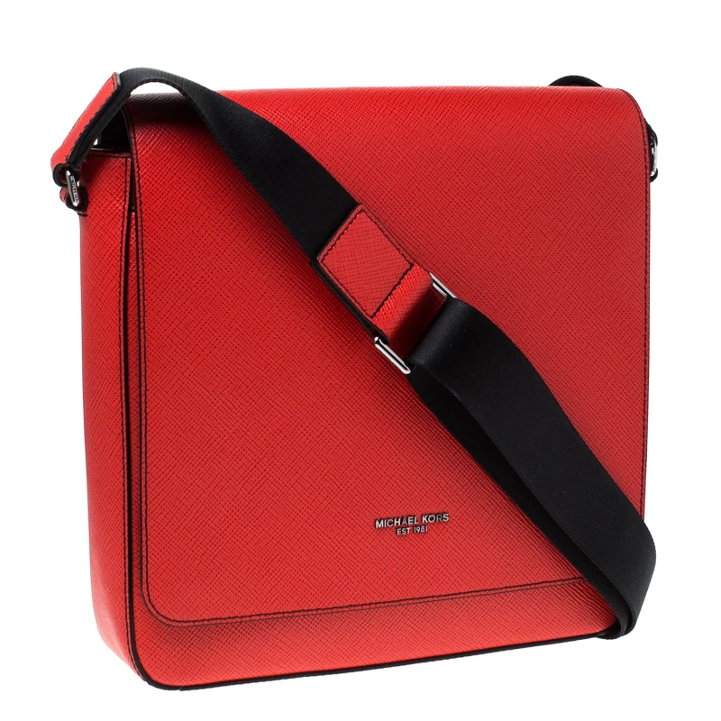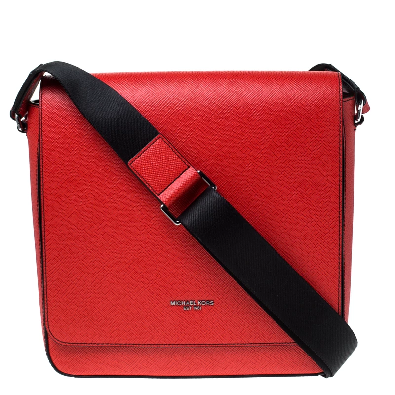 Michael Kors brings to you this fabulous messenger bag to add something new to your closet. This red bag is crafted from Saffiano leather and features the brand logo detailed on the front. It is equipped with a shoulder strap and a fabric-lined interior that is spacious, making the bag absolutely perfect for everyday use!