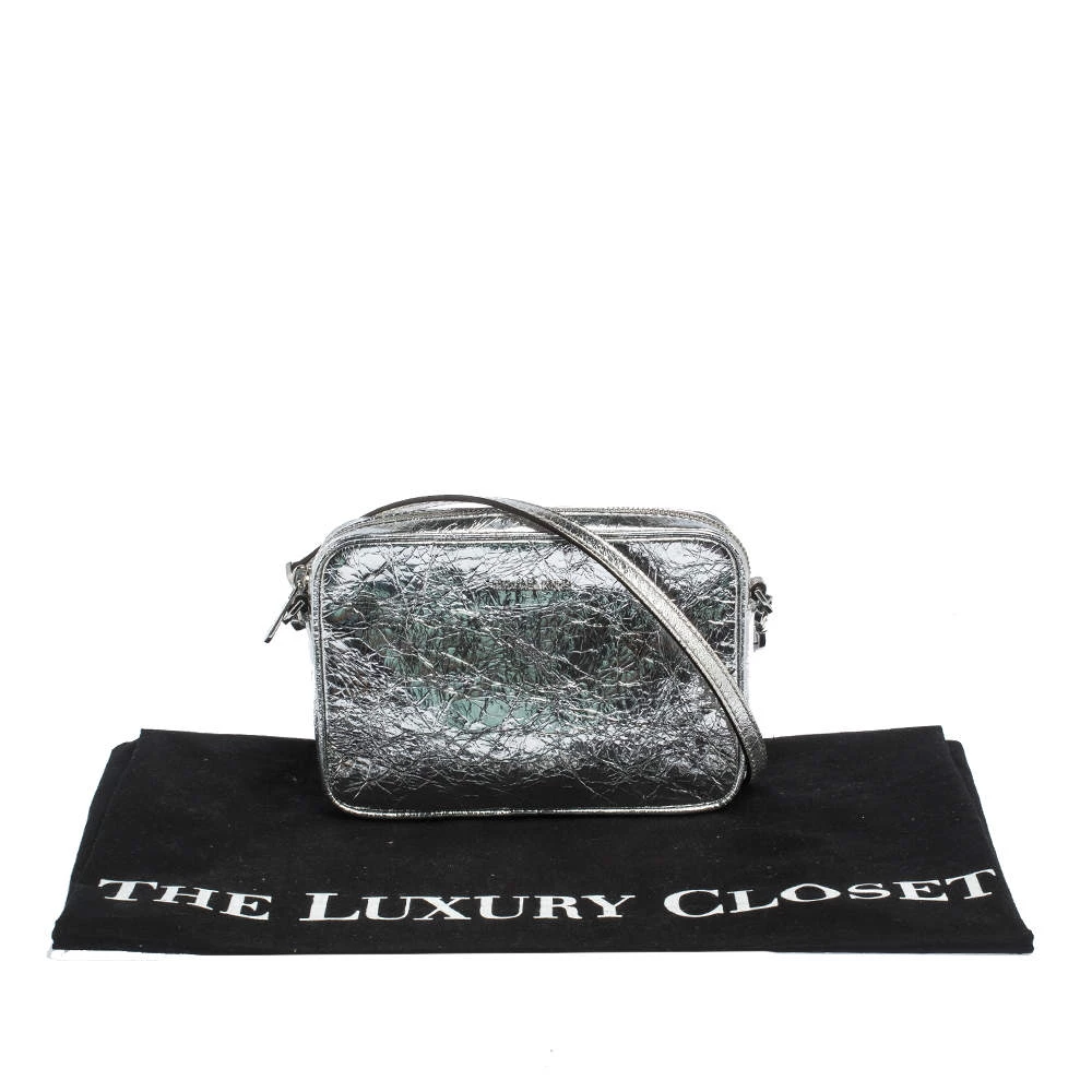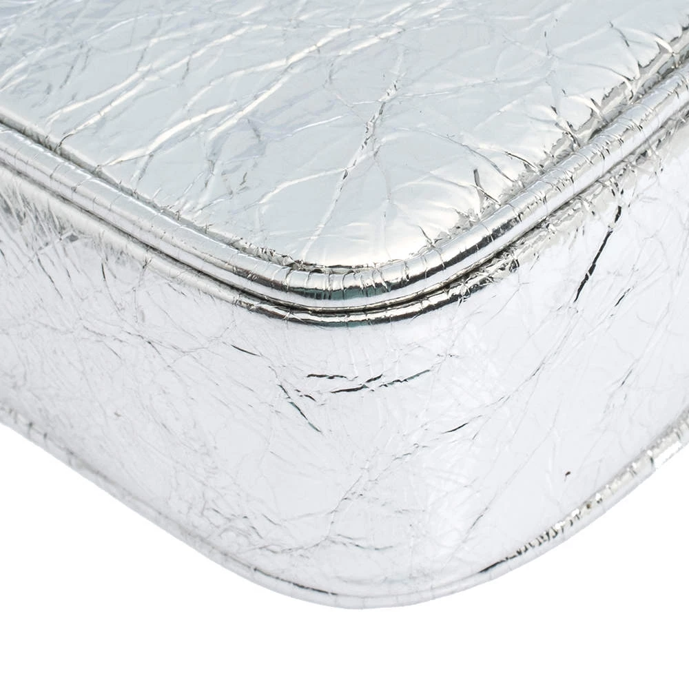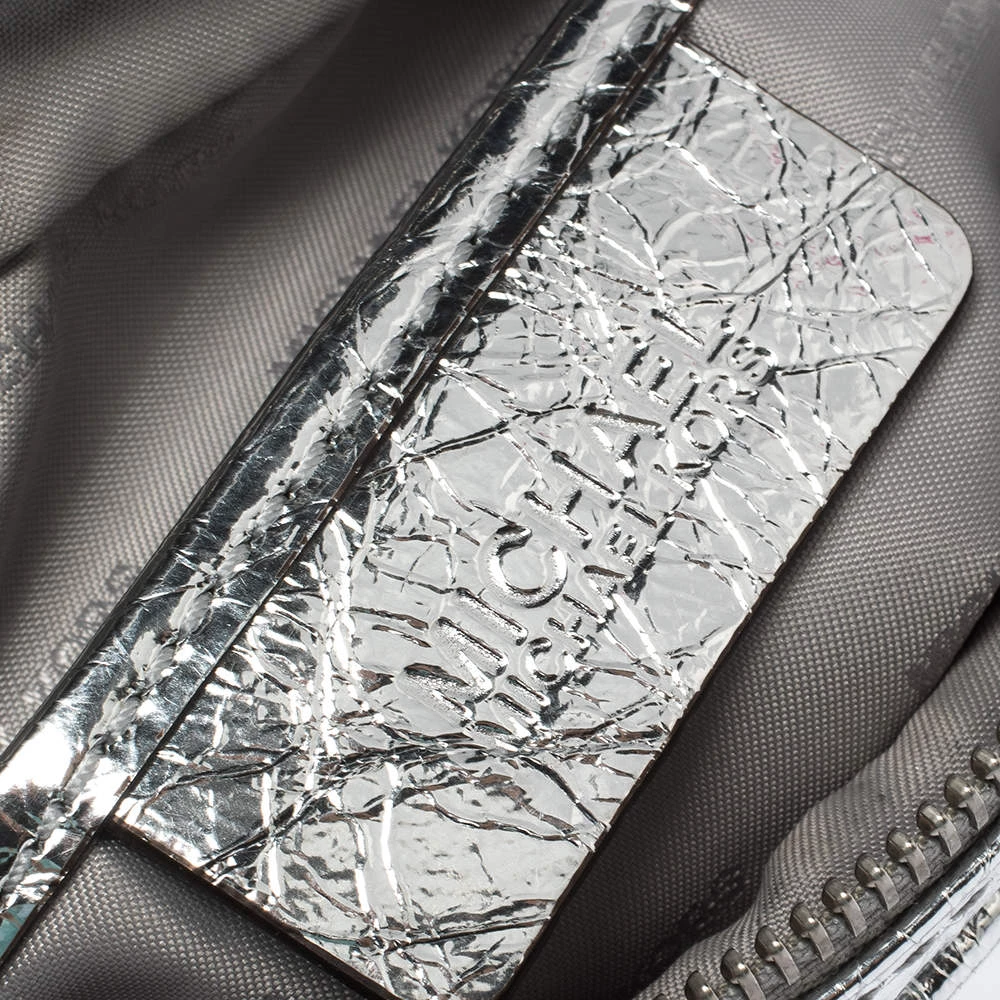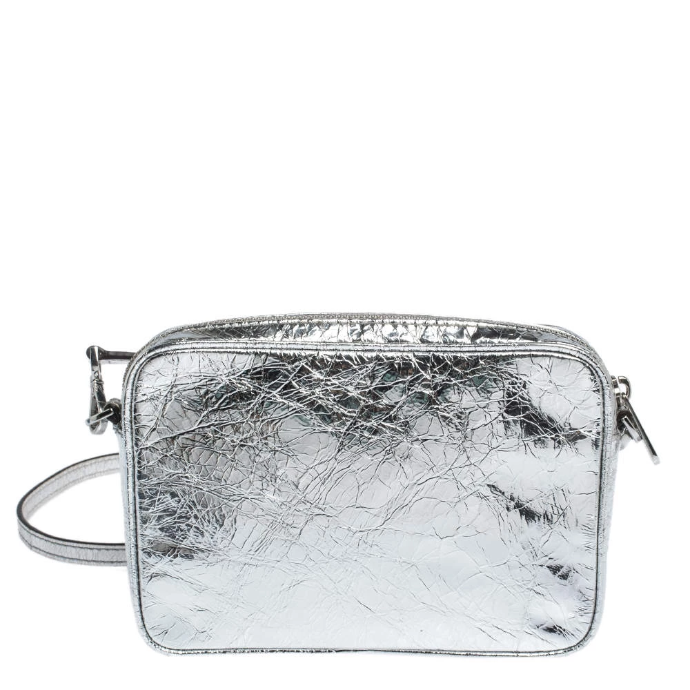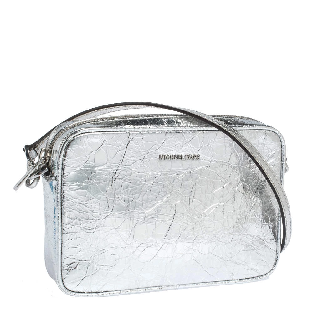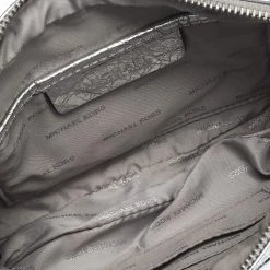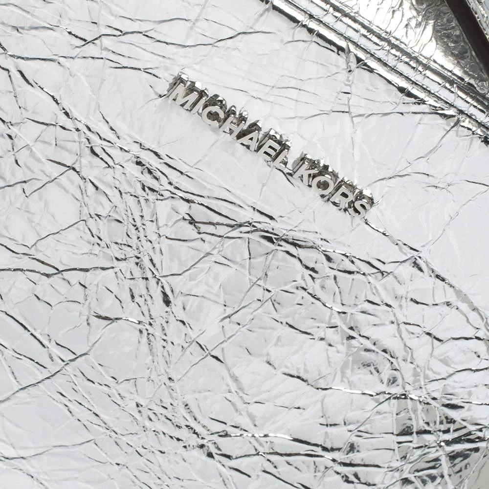 Meticulously crafted from crinkled patent leather, this bag by Michael Kors exudes just the right amount of style and sophistication. The top zipper leads to a fabric-lined interior fitted with a slip pocket. Carry this silver stunner wherever you go and make heads turn!