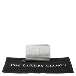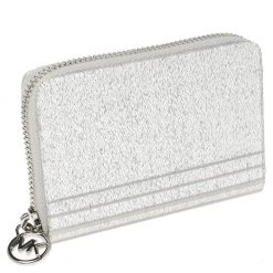 This fabulous Michael Kors coin purse is the chicest way to all your change! Crafted in glitter acrylic, this purse has a leather and fabric interior with multiple slots and a zipper compartment. The creation is complete with the MK medallion attached to the zip-around closure.