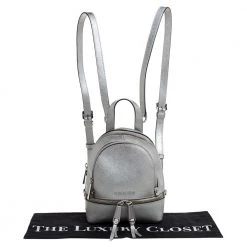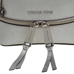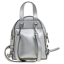 Get set to look uber stylish with this silver backpack from Michael Kors. It has been crafted from leather and it flaunts zippers that reveal a fabric-lined interior, a zip pocket on the front, and shoulder straps. This piece is very much in vogue, so get your hands on this today!