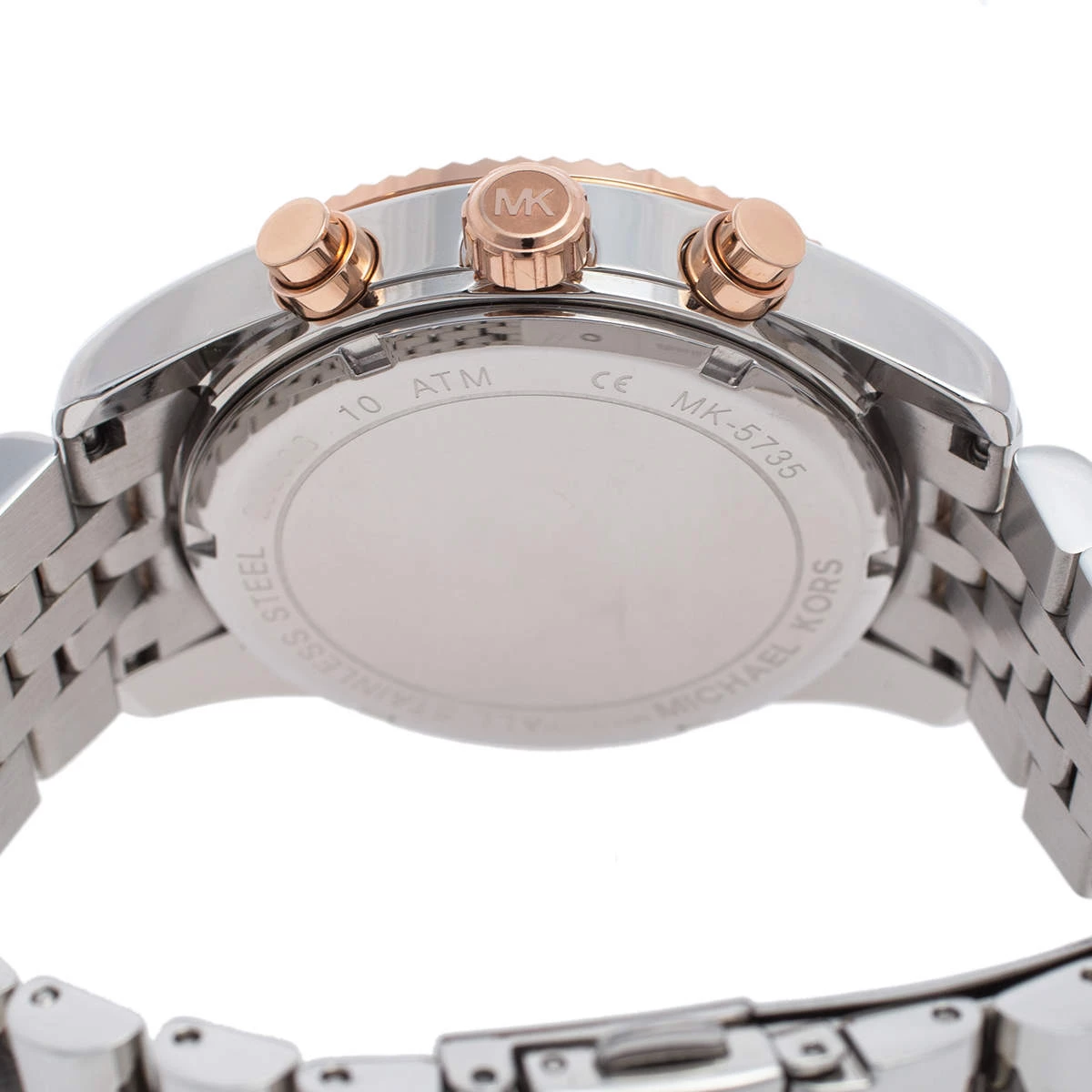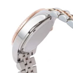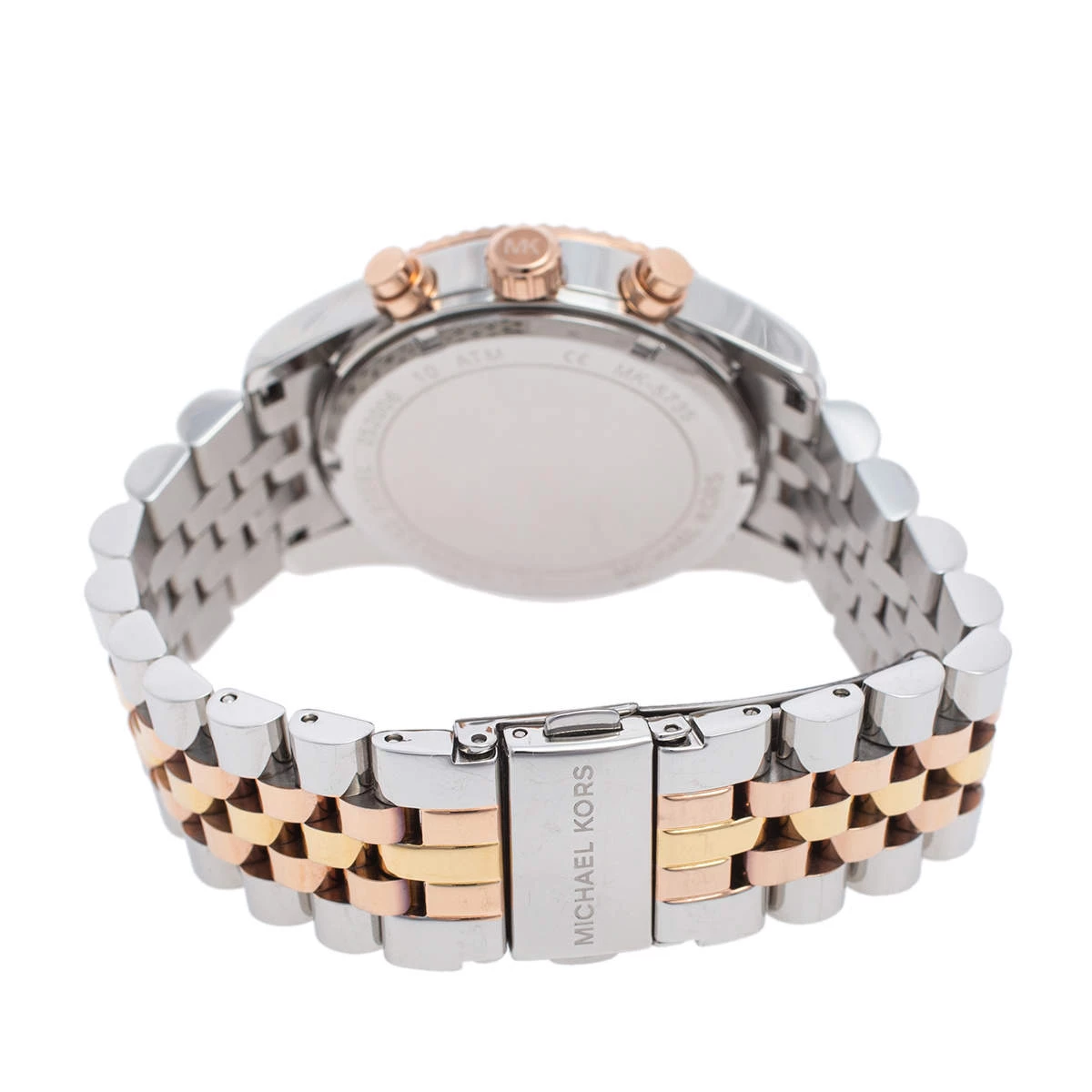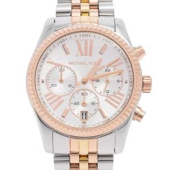Designed with a fine blend of luxury and craftsmanship, this Lexington watch from Michael Kors is sure to delight your style. In two-toned stainless steel, the watch functions in a quartz movement. A scratch-resistant mineral crystal protects a dial housing Roman numeral and index hour markers, three subdials, and a date window at the six o’clock position. The watch is water-resistant up to 100 meters and it is held by a bracelet with a push-button release.