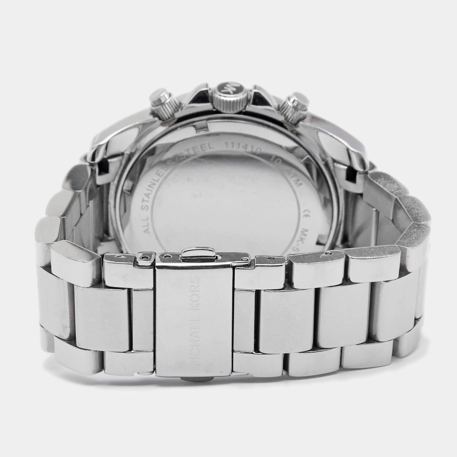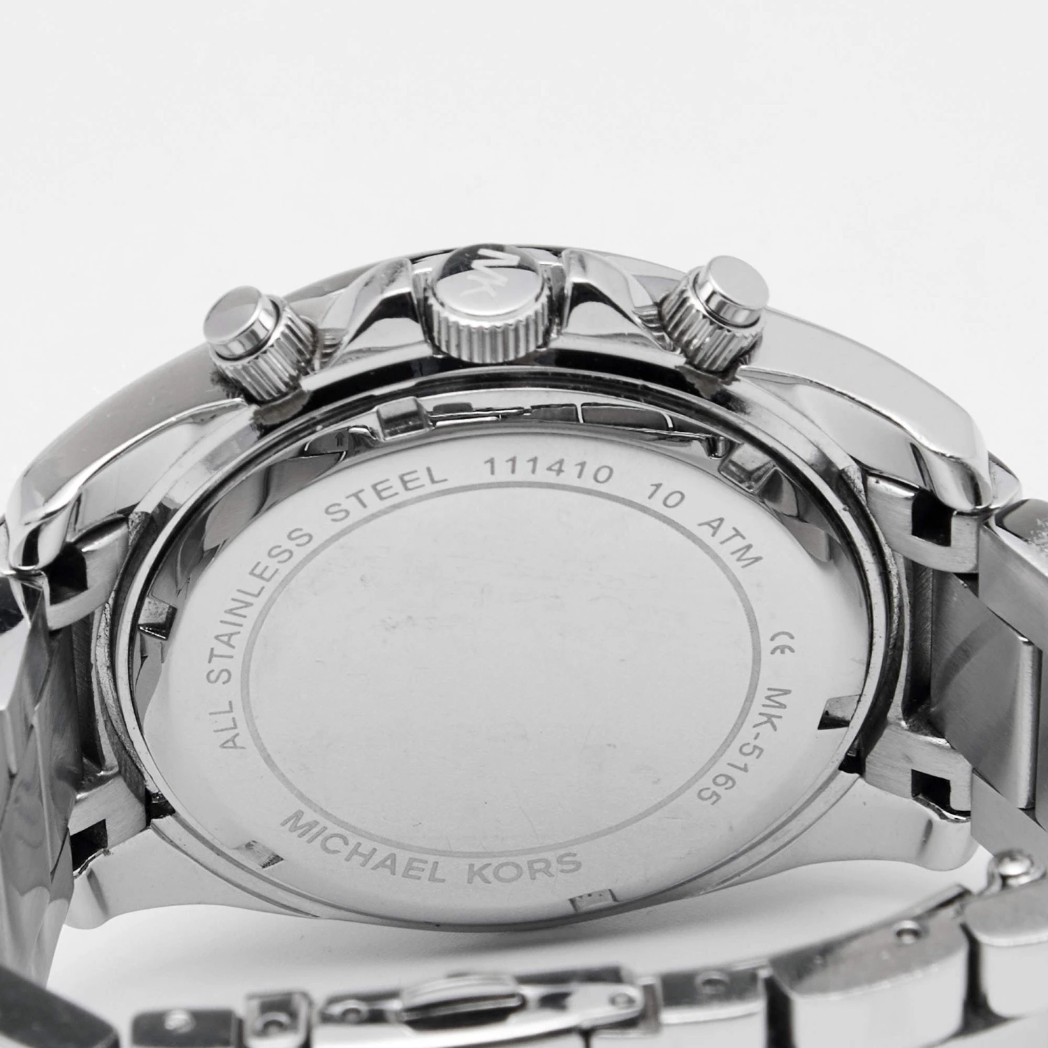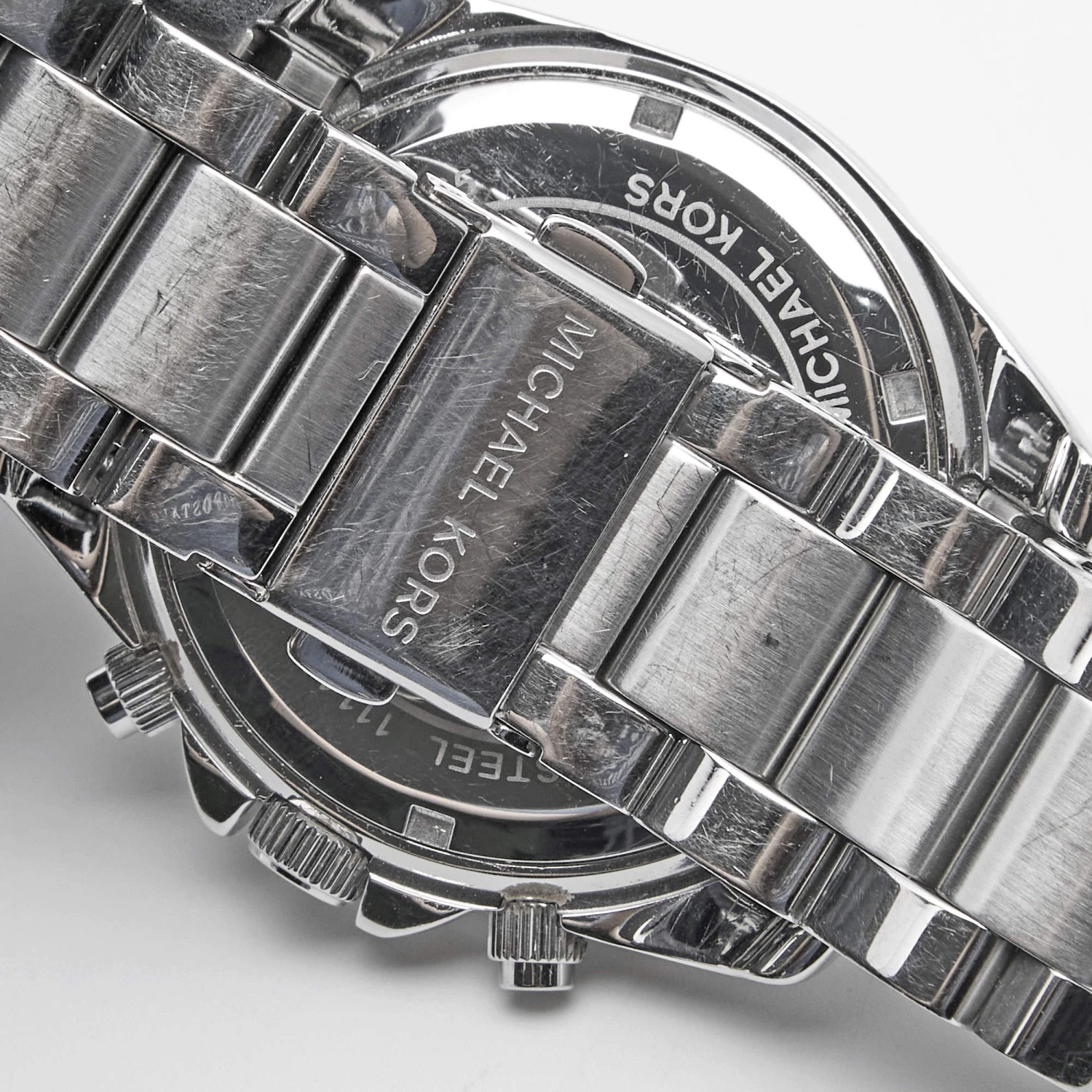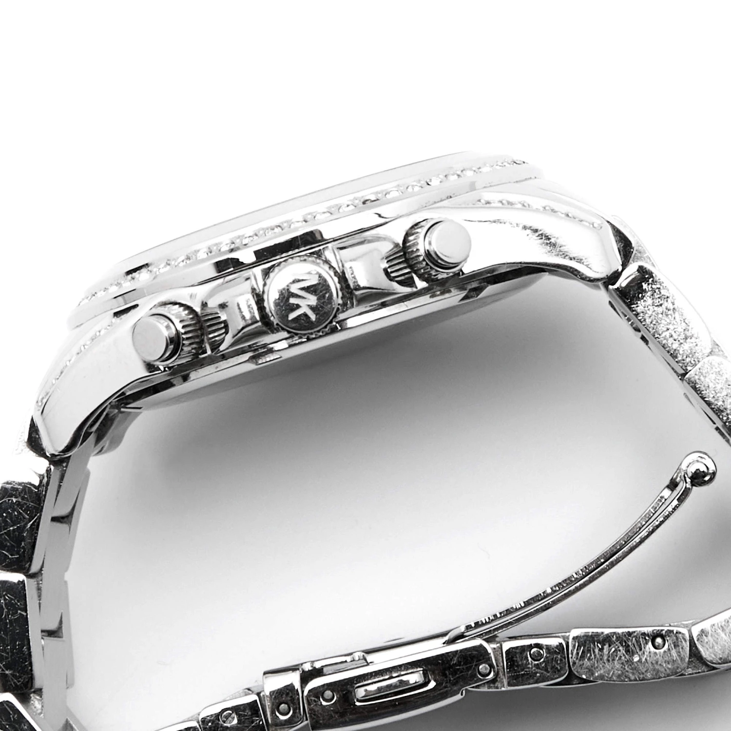 Let this timepiece from Michael Kors help you make every moment count! Created with skill using high-grade materials, the quartz watch is made of stainless steel and added with a silver dial and crystals. It is a functional accessory designed to impart a luxurious style while keeping you on time.