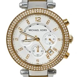 Set to shine on your wrist, this Michael Kors watch comes in a delighting gathering of the finest features. It has been wonderfully crafted from two-tone stainless steel and designed with a bezel decorated with crystals. The scratch-resistant mineral glass protects a silver dial that has hour markers, three subdials, a date window, and three hands. Lastly, the creation is topped by a water resistance of 100 meters and held by a bracelet with a push-button release.