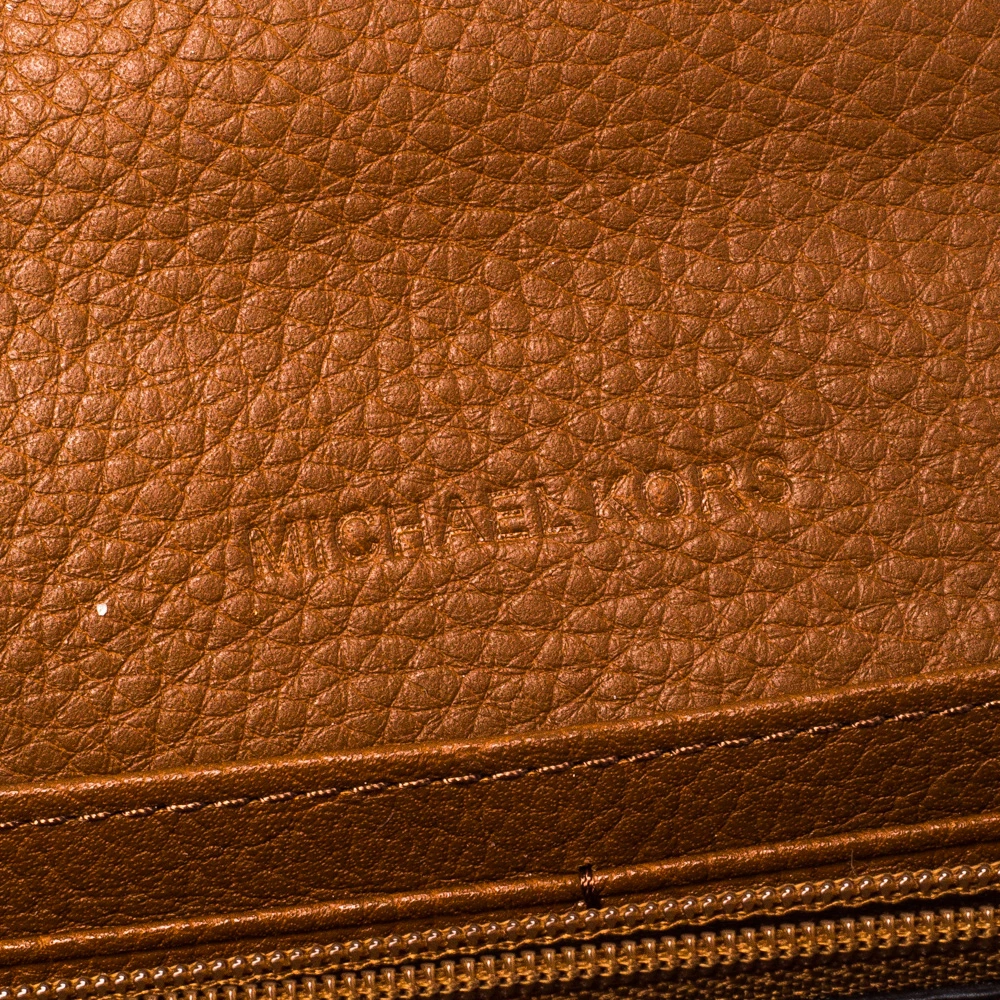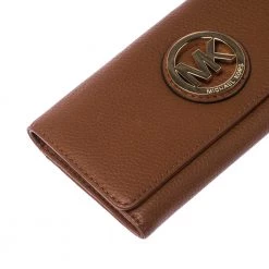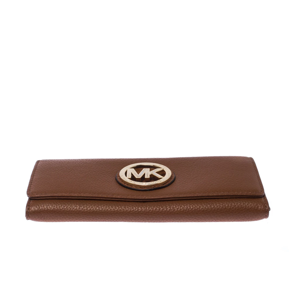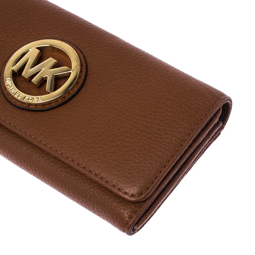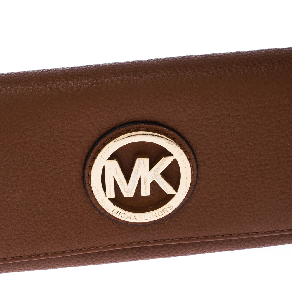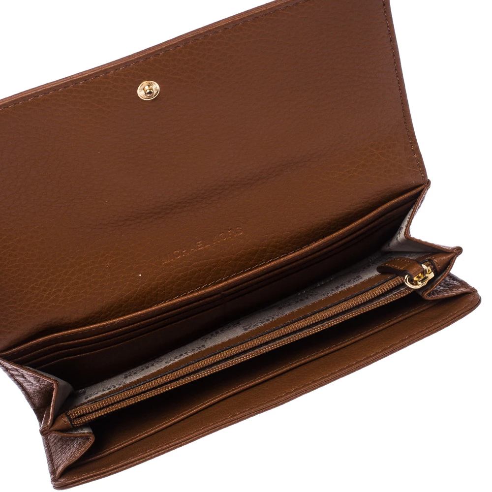 A versatile wallet like this one from Michael Kors will be your handy companion. Crafted from tan leather, the front flap opens to reveal card slots, a zip pocket, and room to stow your bills and currency.