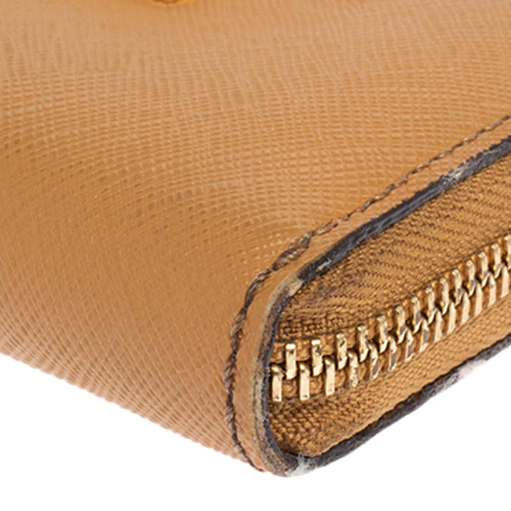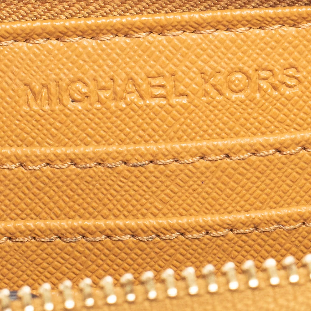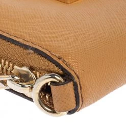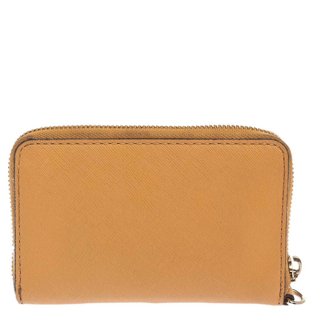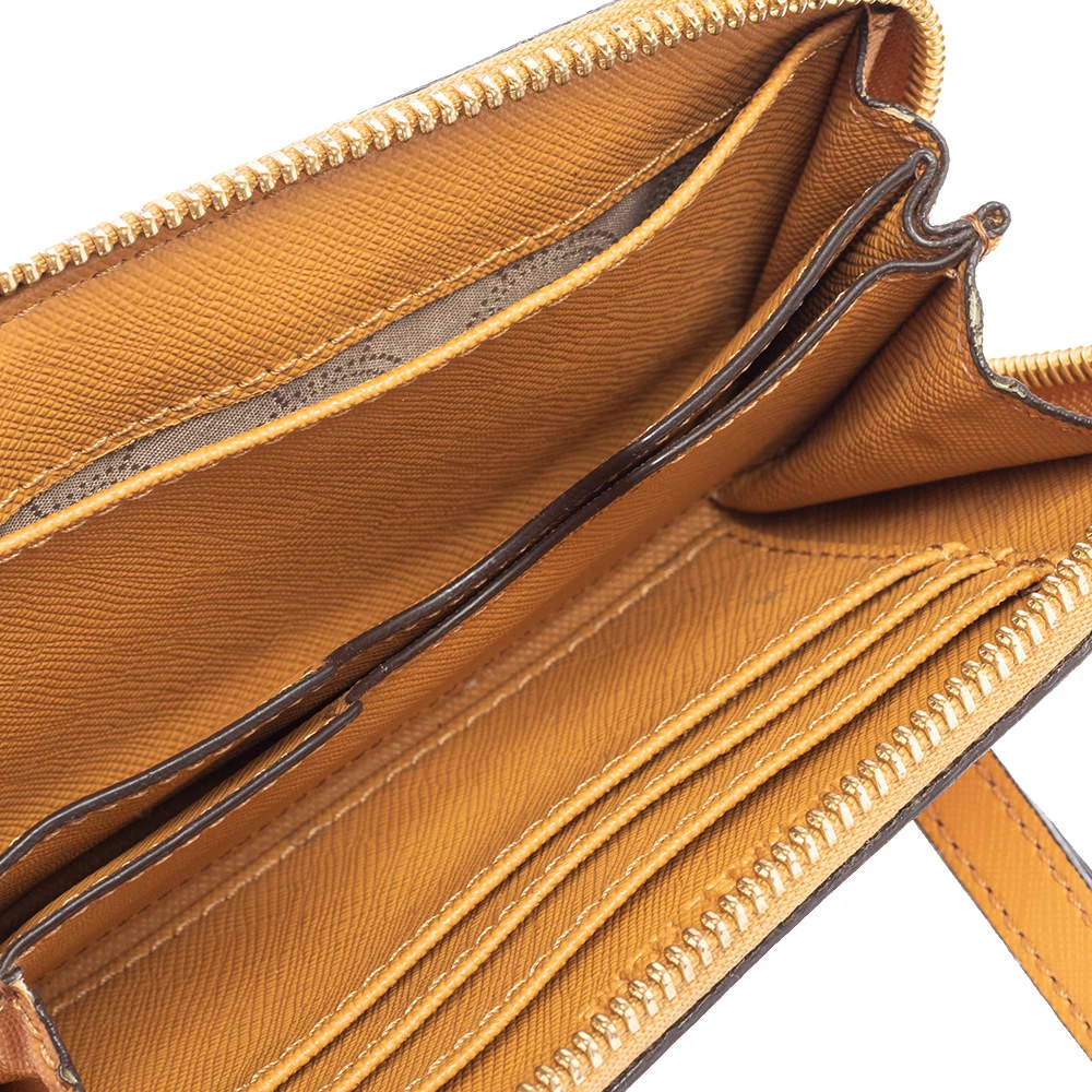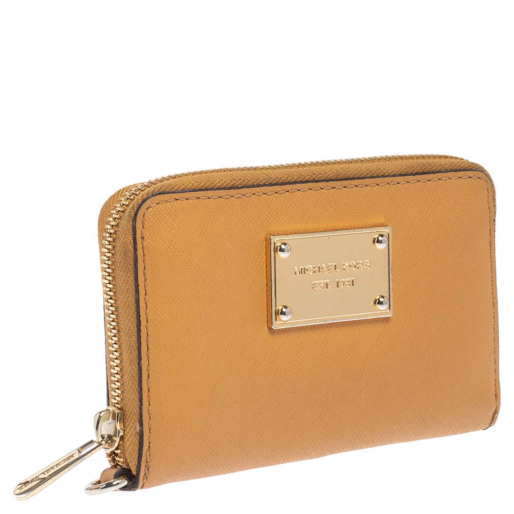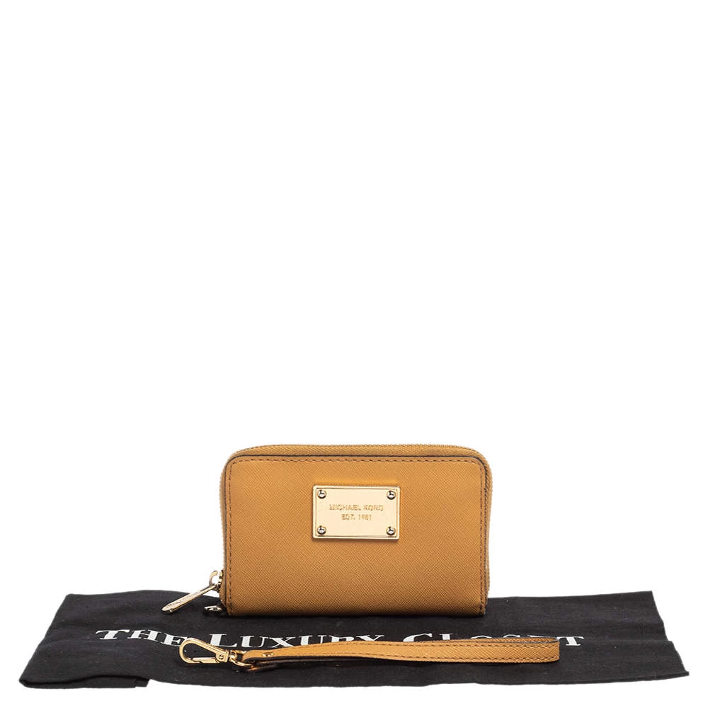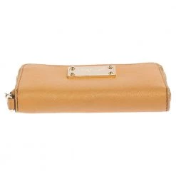 This wallet from Michael Kors is one creation a fashionista like you must own. It has been wonderfully crafted from tan leather and it flaunts the brand logo on the front. It is ready with a zip closure that opens to reveal an interior with a zip compartment and several slots. It comes with a removable wristlet.