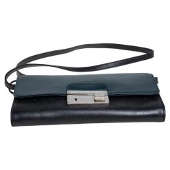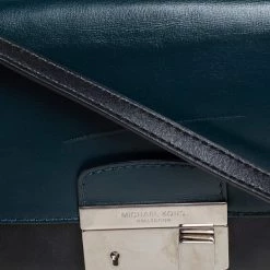 This elegant clutch from Michael Kors is easy to carry without compromising on style. Crafted from leather, the clutch features silver-tone hardware, a shoulder strap, and a flap. The interior is leather-lined and has a slip pocket.