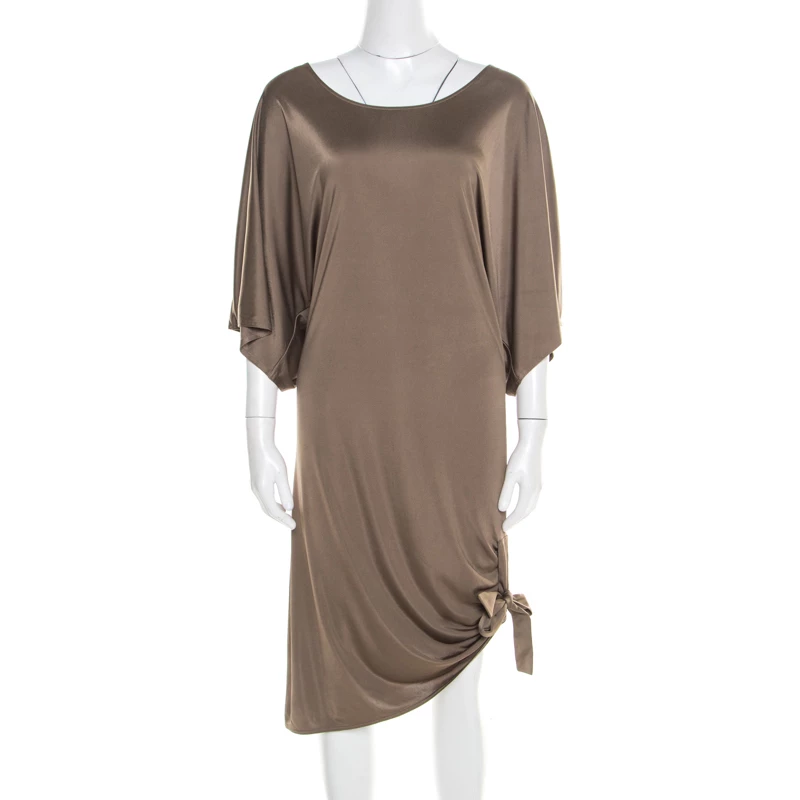 This up-to-date dress from the house of Michael Kors features a splendid design making it a must-have piece in your closet. This brown dress is the excellent pick that comes with tie detail at the bottom. A perfect balance of comfort and style, this dress is a wardrobe staple.