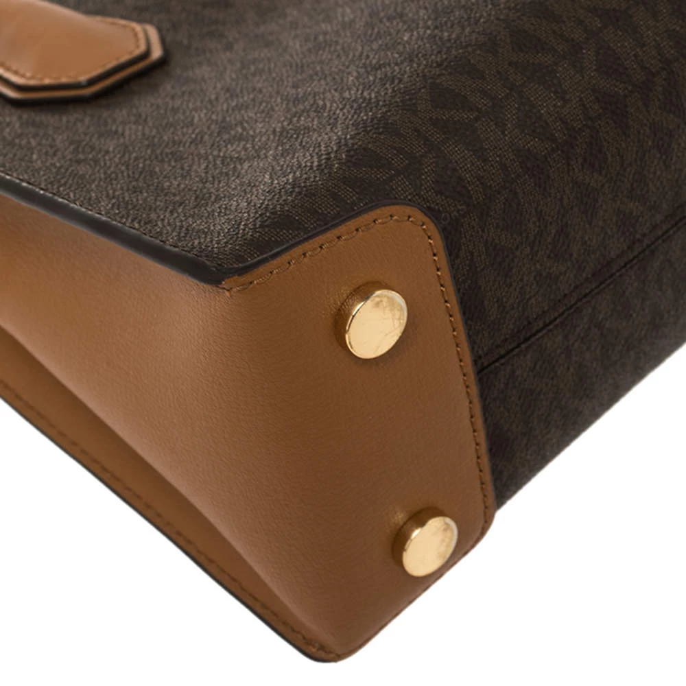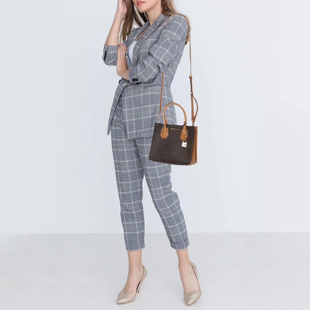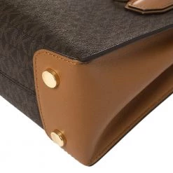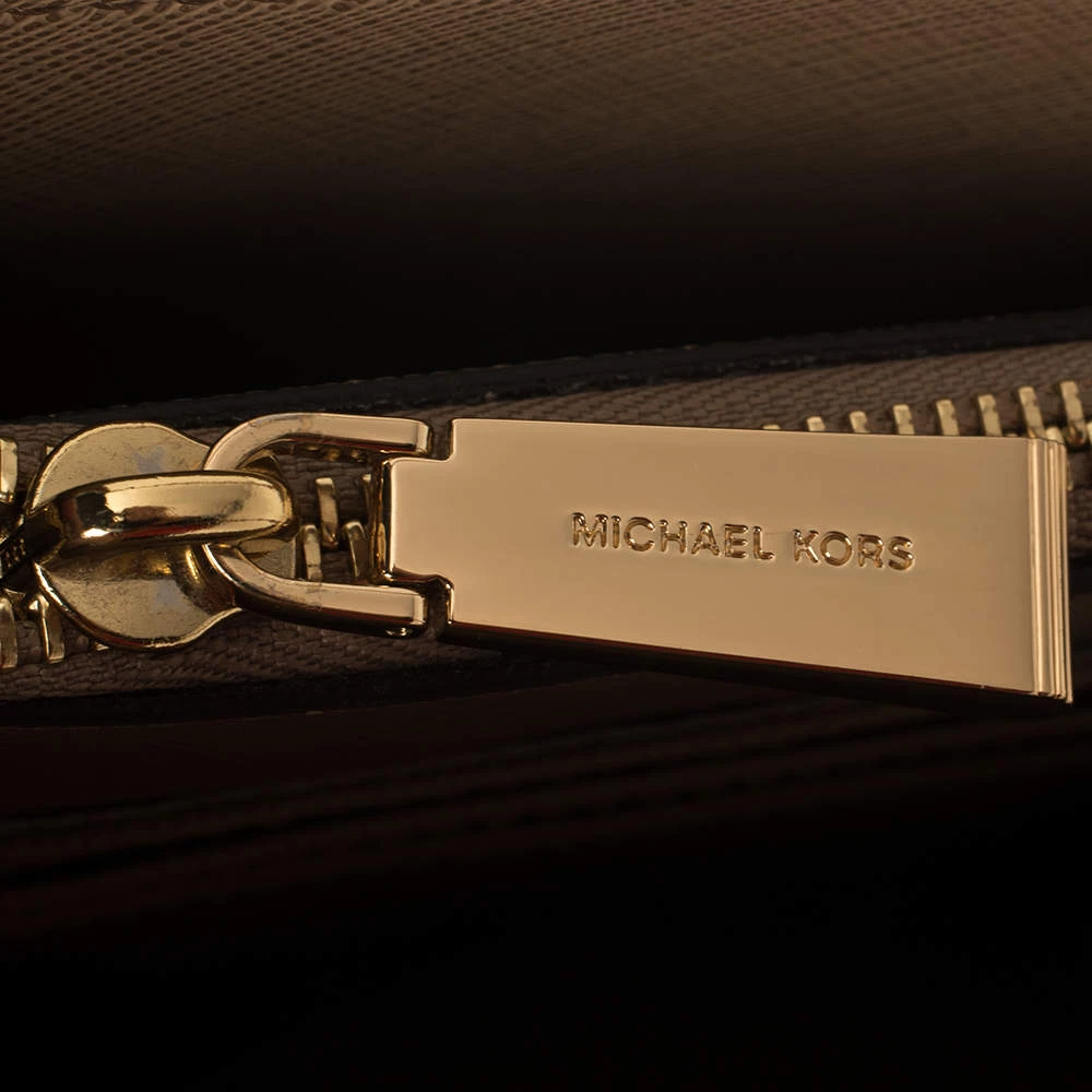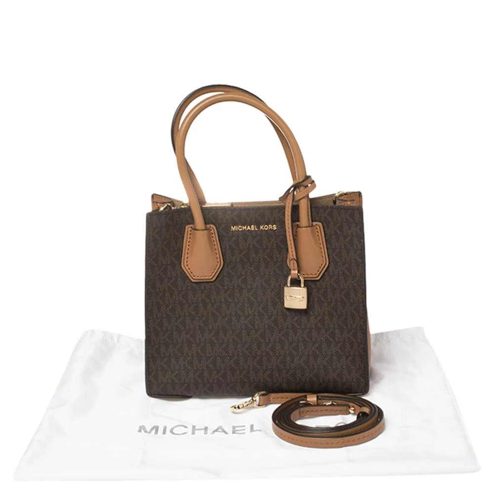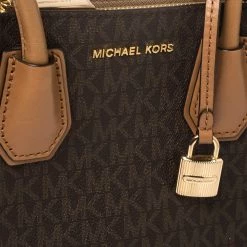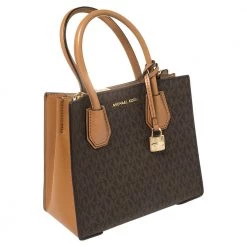 This simple Mercer tote from Michael Kors is a worthy buy. It features dual top handles, a shoulder strap, protective metal feet, and a padlock. Crafted from the brand’s signature coated canvas and leather, it has a spacious interior that houses two open compartments and a zipped compartment.