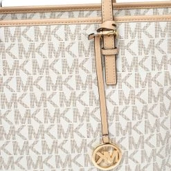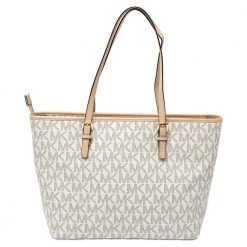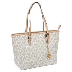 This Michael Kors tote is beautiful in so many ways. From its design to its structure, the signature coated canvas and leather bag exudes charm and high fashion. It flaunts two shoulder handles for you to swing and a spacious canvas interior to hold all your essentials.
