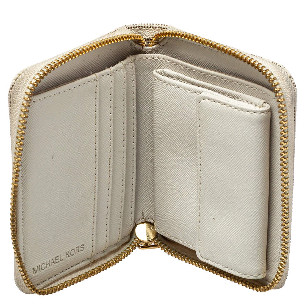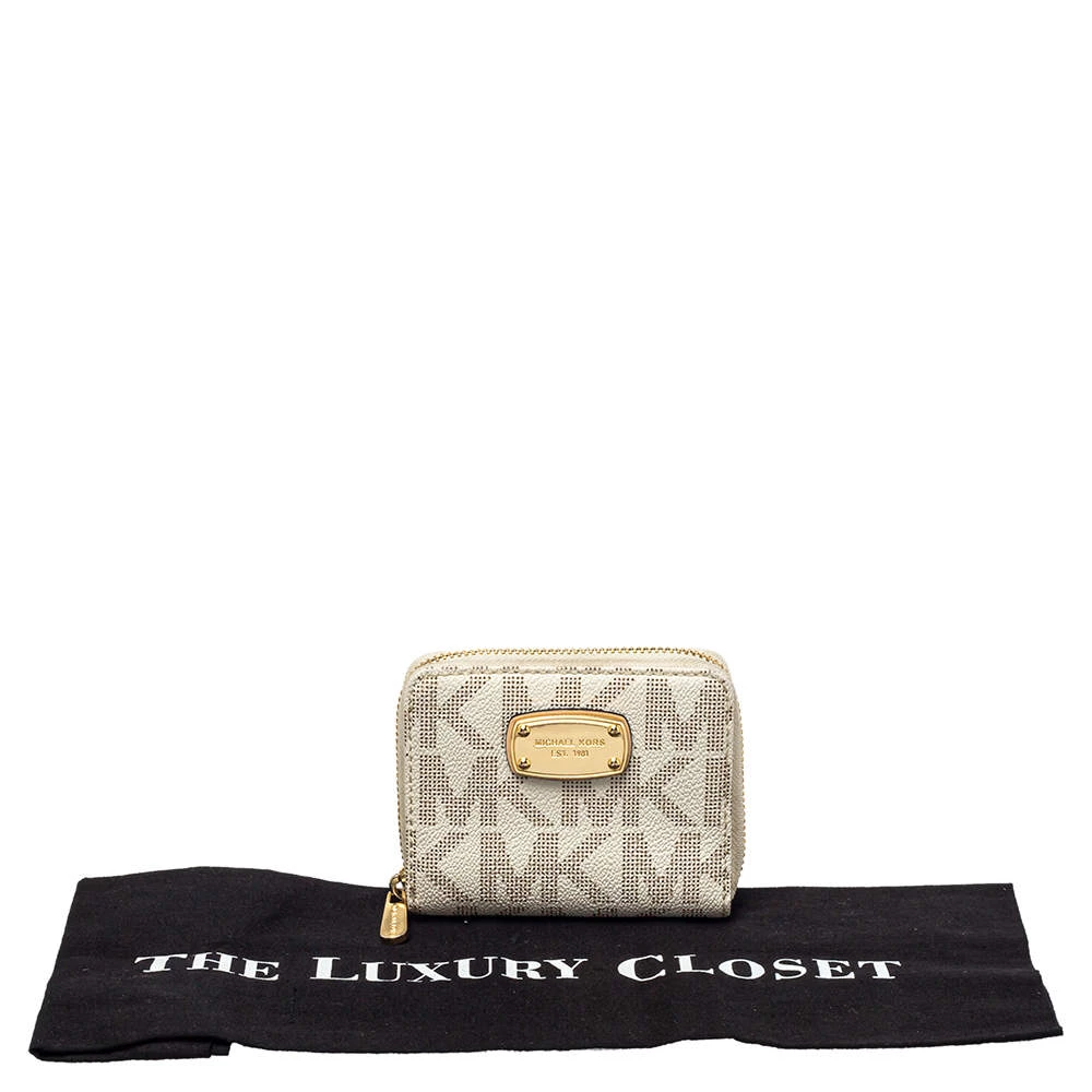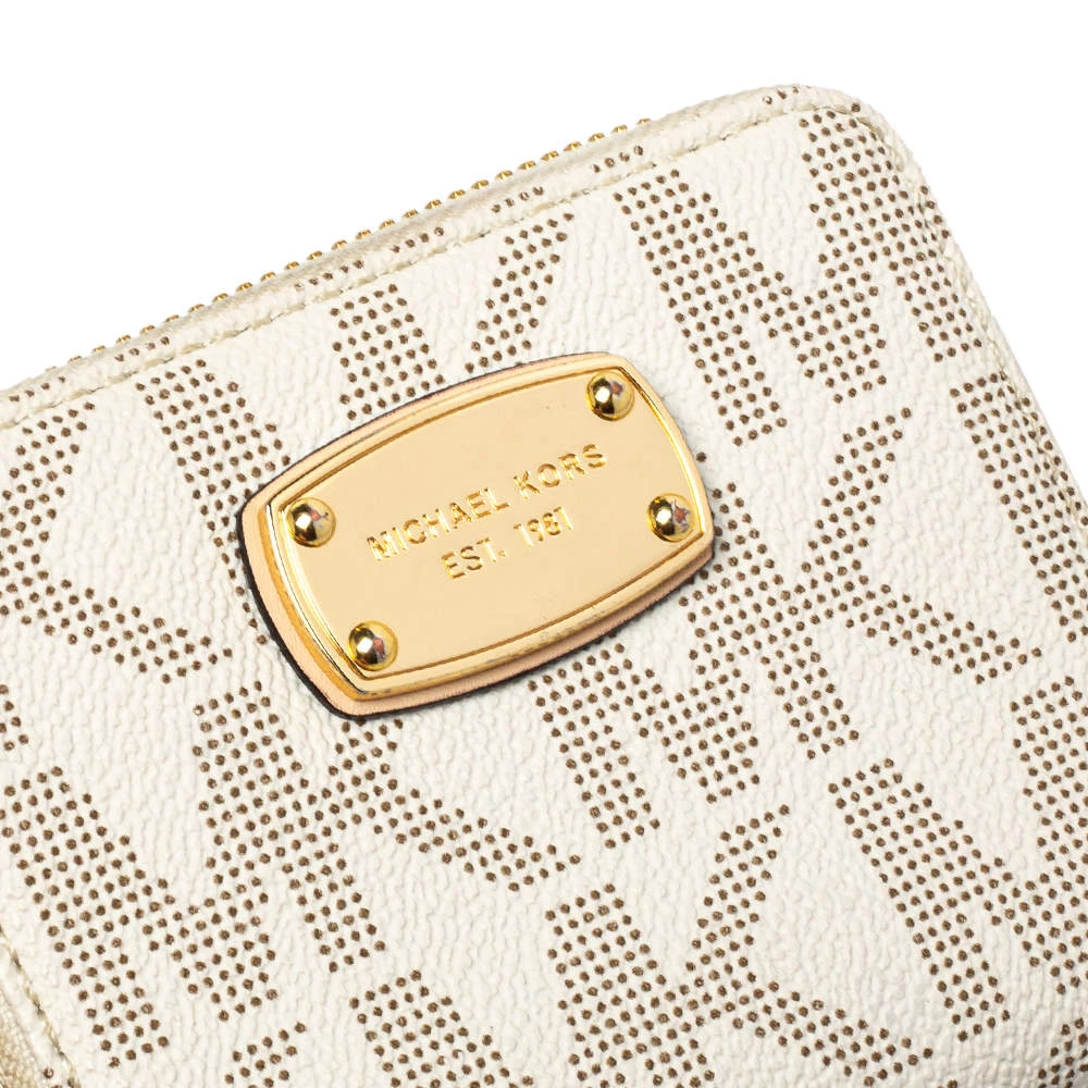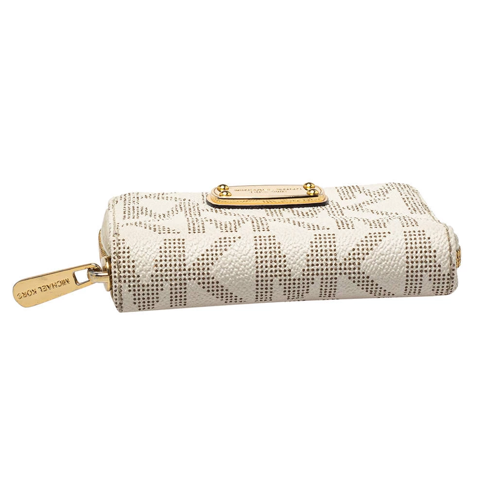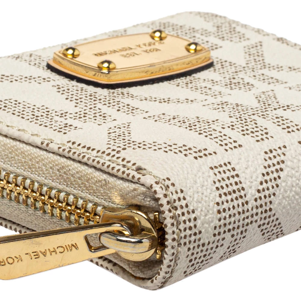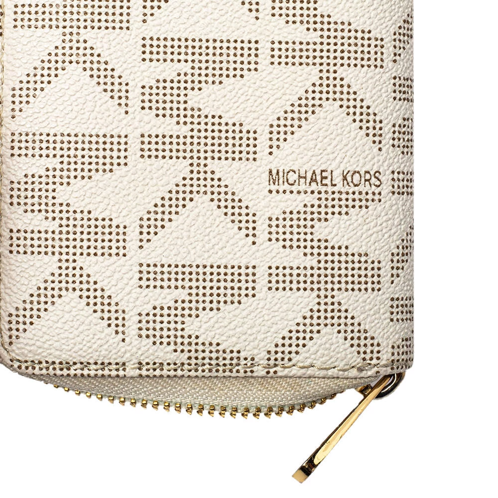 Give your essentials a stylish home with this magnificent wallet from the house of Michael Kors. Featuring a signature coated canvas exterior, this wallet is a convenient accessory. Featuring white & beige shades, this superb wallet is a stylish accessory.