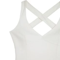 This body sculpting dress by Michael Kors will perfectly accent your curves thanks to its wool and spandex combination. This sleeveless dress features a v-neckline and criss cross straps at the back. It comes with a side zipper.