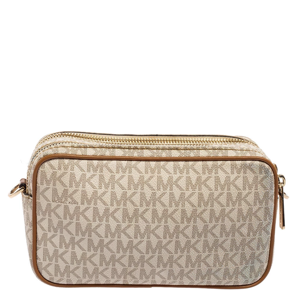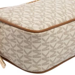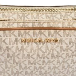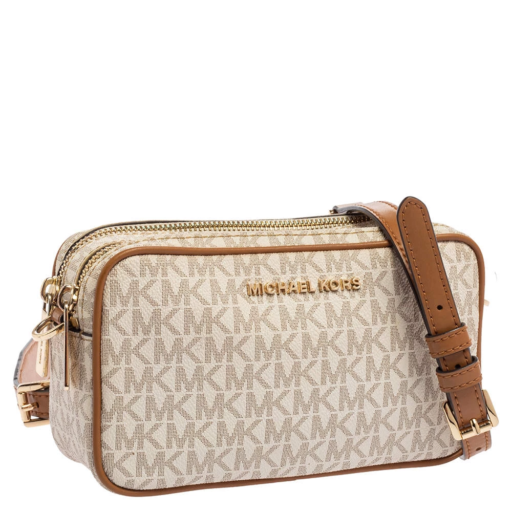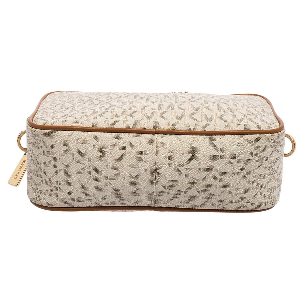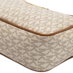 This Michael Kors Jet Set bag is a timeless piece that will last you season after season. This bag is made of signature canvas as well as leather. It has logo detailing, a long shoulder strap, a fabric-lined interior, and gold-tone hardware.
