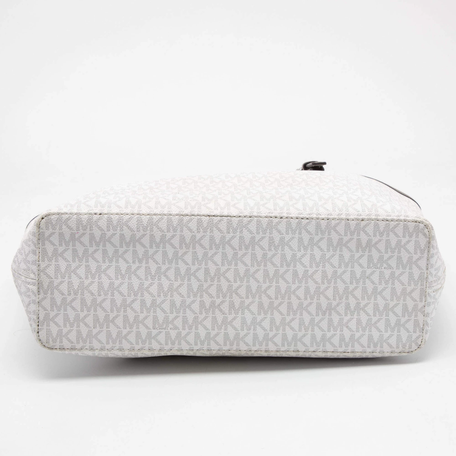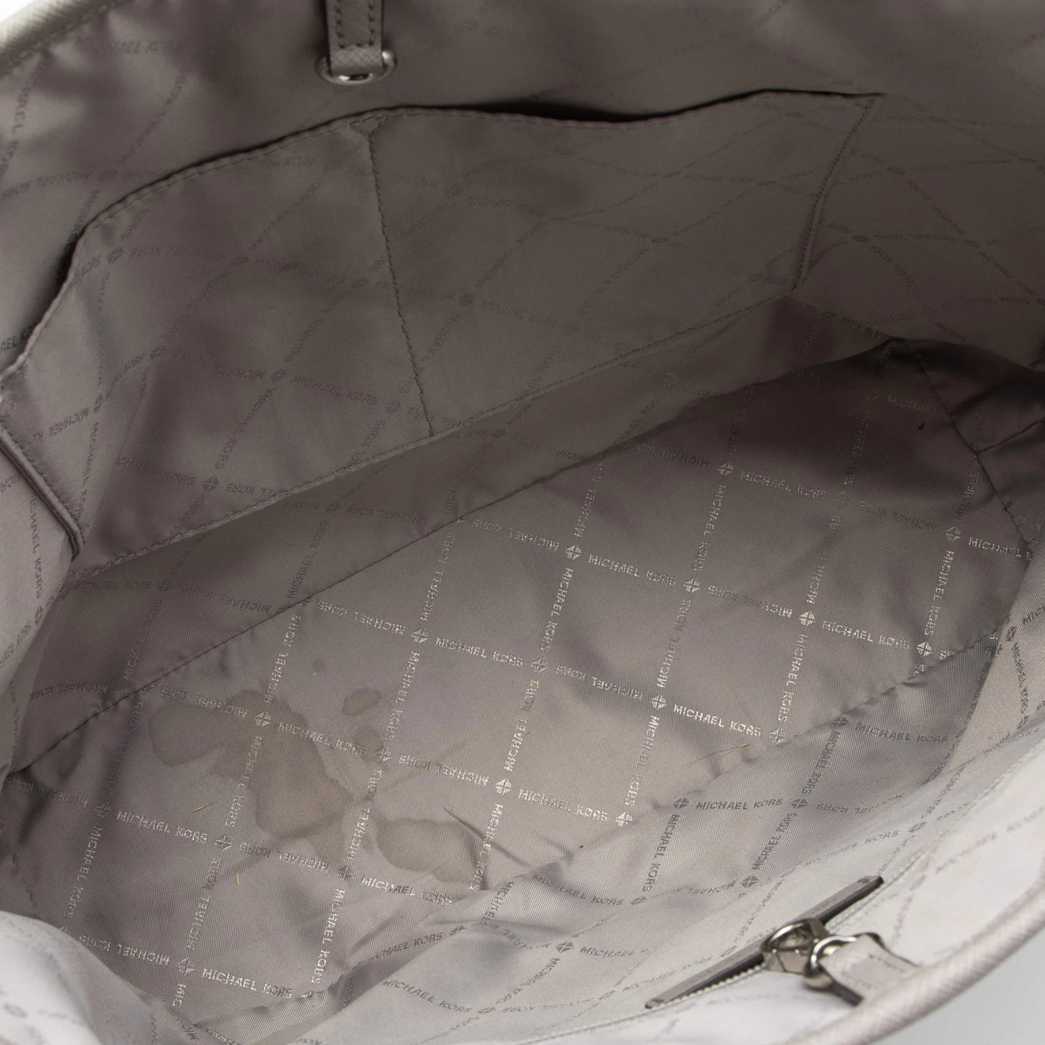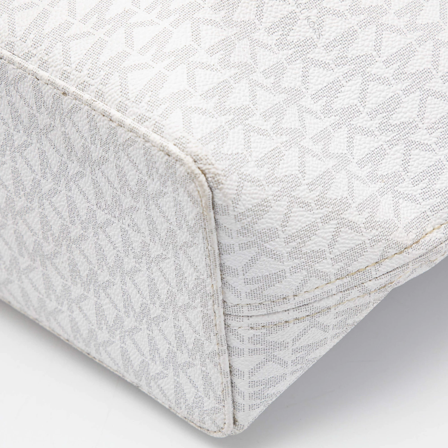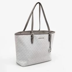 This Michael Kors Jet Set tote aims to provide you with practical ease. With a beautiful design and striking structure, this leather and signature coated canvas bag is filled with luxurious details. It exhibits dual handles for you to carry it in a chic way and a spacious nylon interior to hold all your essentials. The exterior slip pockets at the back enhance its functionality, and the brand signature on the front makes it easily recognizable.
