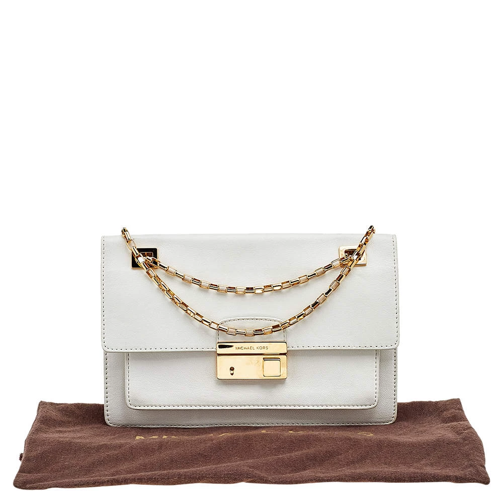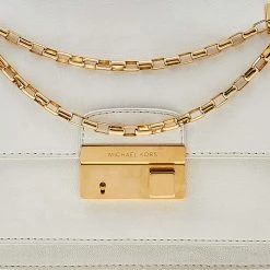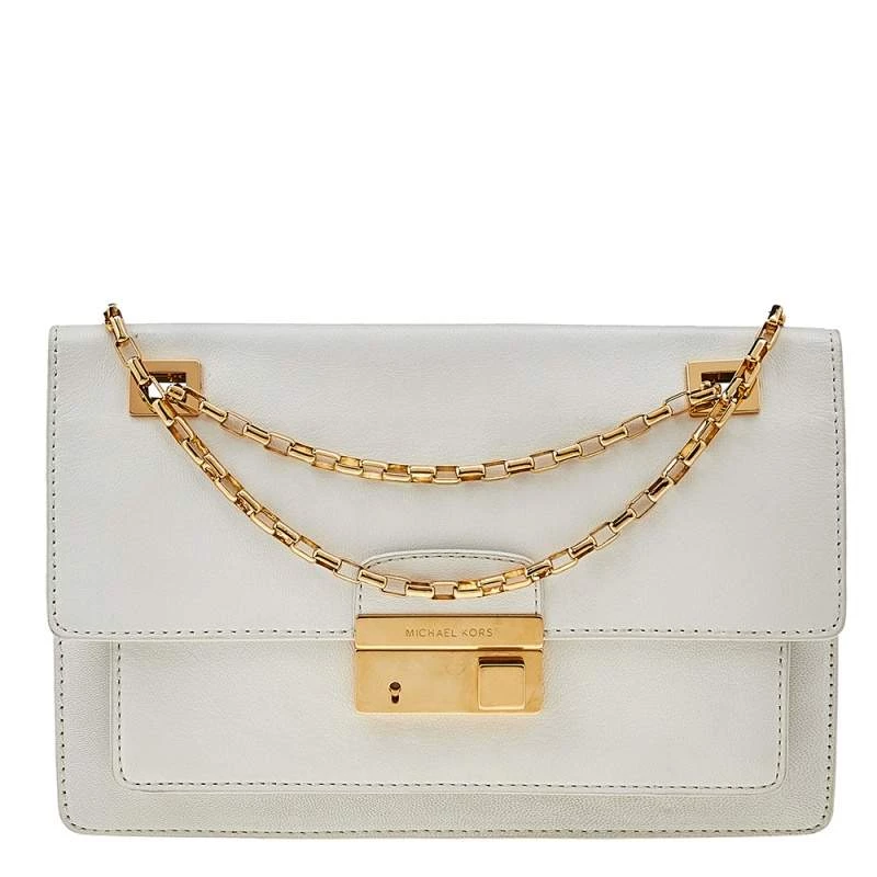 You’re sure to fall in love with this Cece bag from Michael Kors. Crafted from white leather, the bag flaunts a front pocket. It has a spacious canvas-lined interior housing a zip pocket. This beauty is complete with a chainlink shoulder strap.