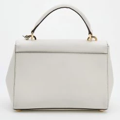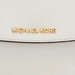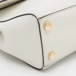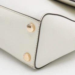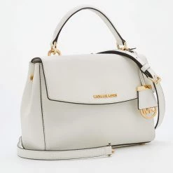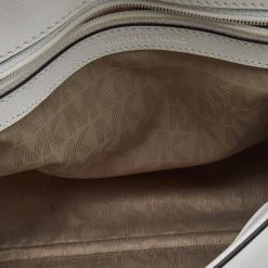 This bag comes from the fashion house of Michael Kors. Crafted from white leather, it has a fabric interior that ensures to house your everyday essentials effortlessly. The MK Ava top handle bag is complete with the brand name on the front.