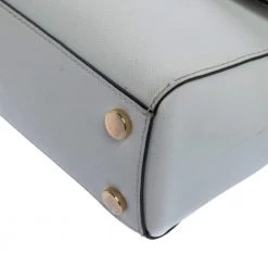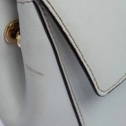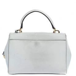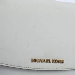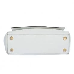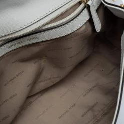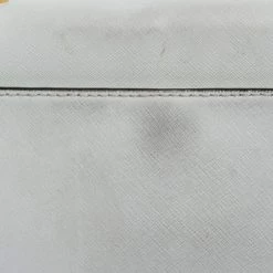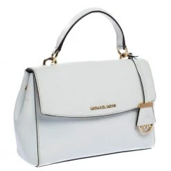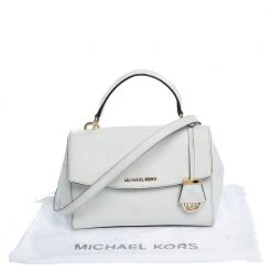 This white Ava bag comes from the fashion house of Michael Kors. Crafted from leather, it features a durable fabric interior that ensures to house your daily essentials. Designed with a flap closure, it flaunts a gold-tone brand logo on the front and a top handle.