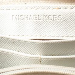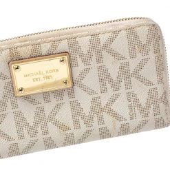This wallet is a suave creation from the extraordinary house of Michael Kors. Store your essentials effortlessly in this sturdy monogram coated canvas wallet. A subtle yet catchy white shade characterizes this fine wallet.