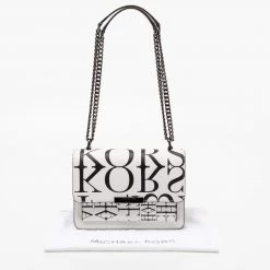 Ensure your day’s essentials are in order and your outfit is complete with this MK bag. Crafted using leather, the bag has a sliding chain link handle, newsprint logo details, metal brand detail on the front, and a lined interior.