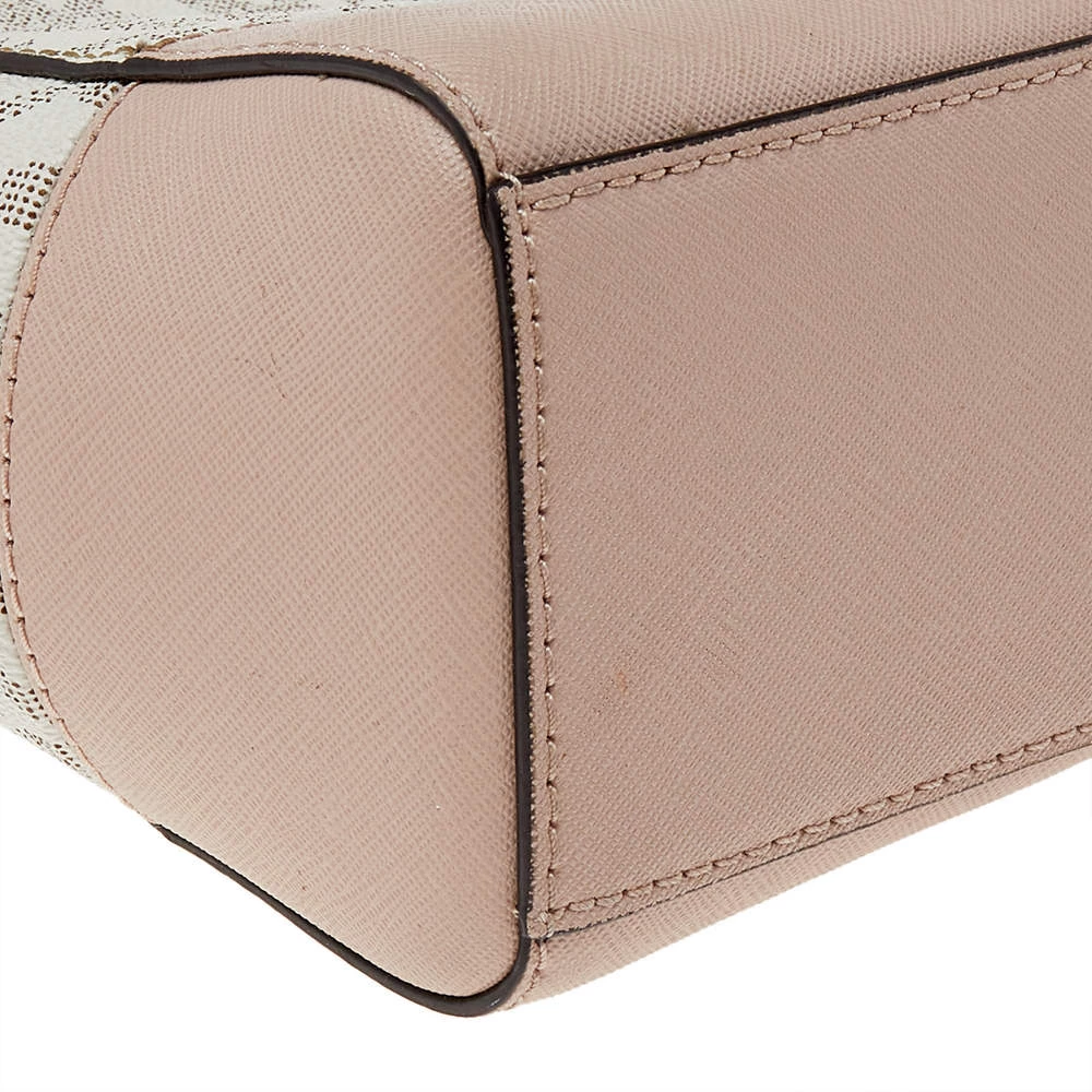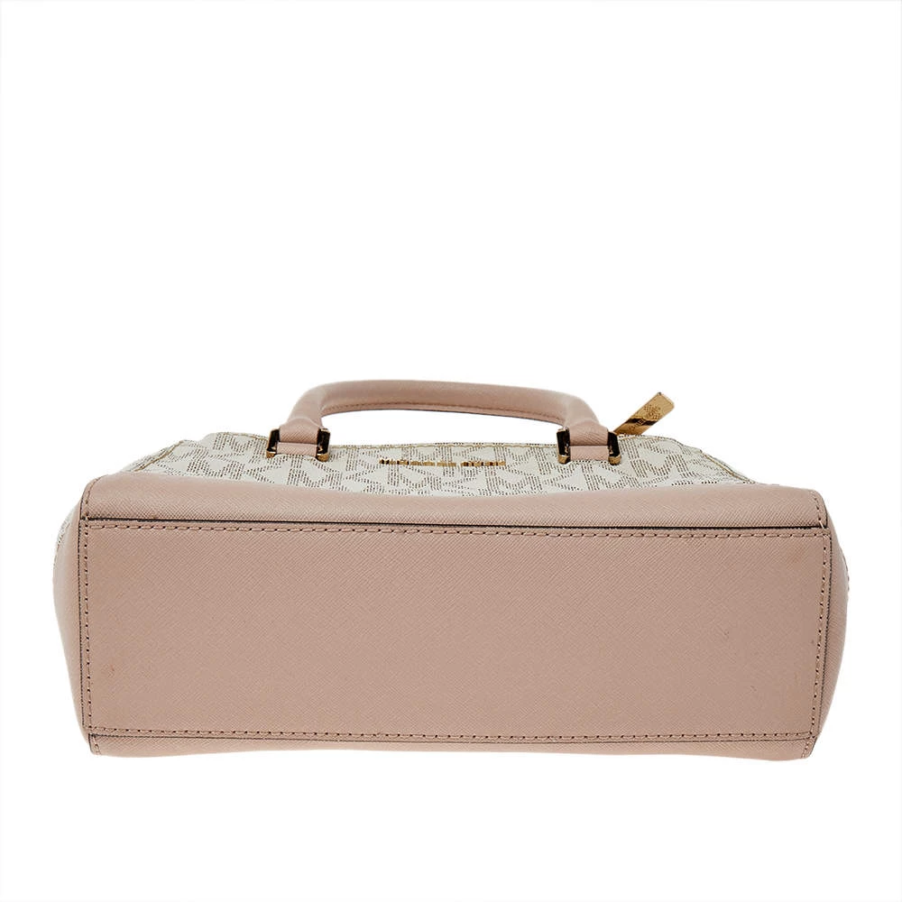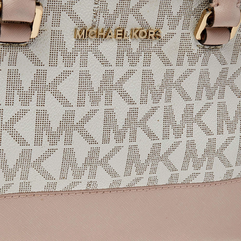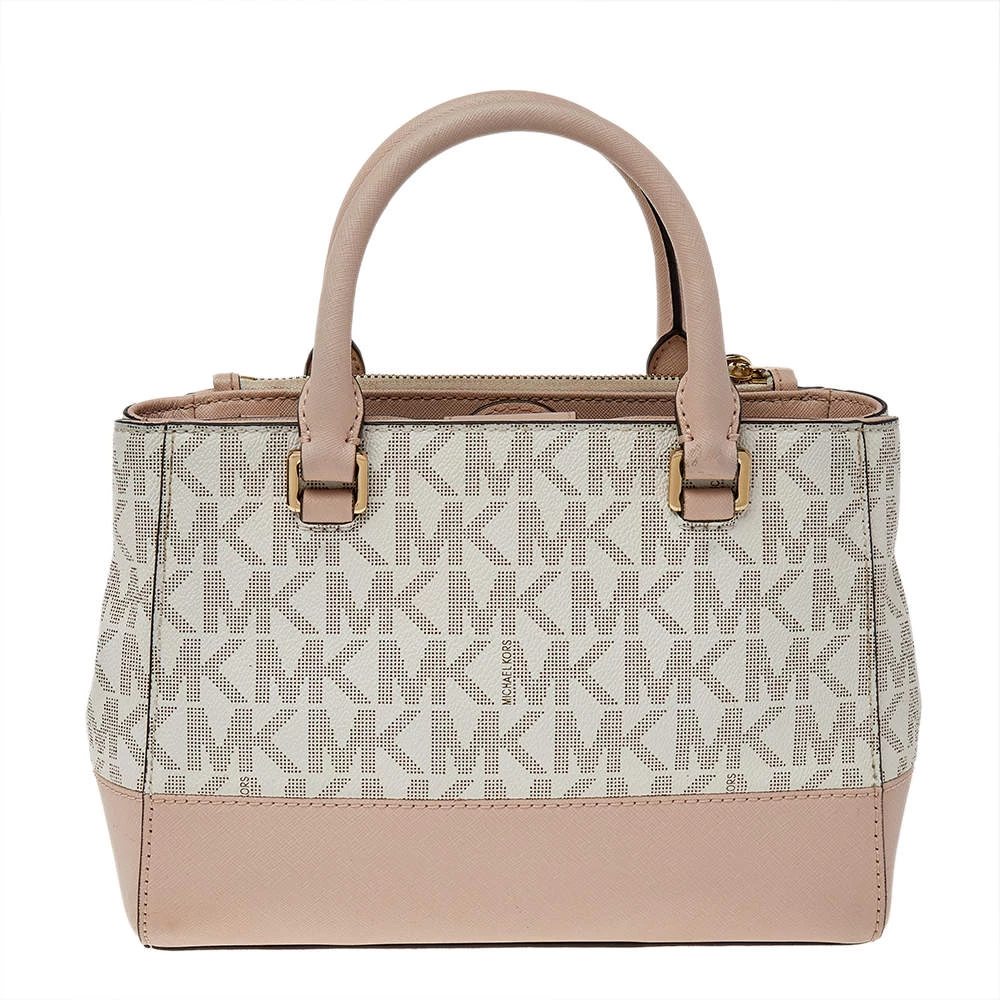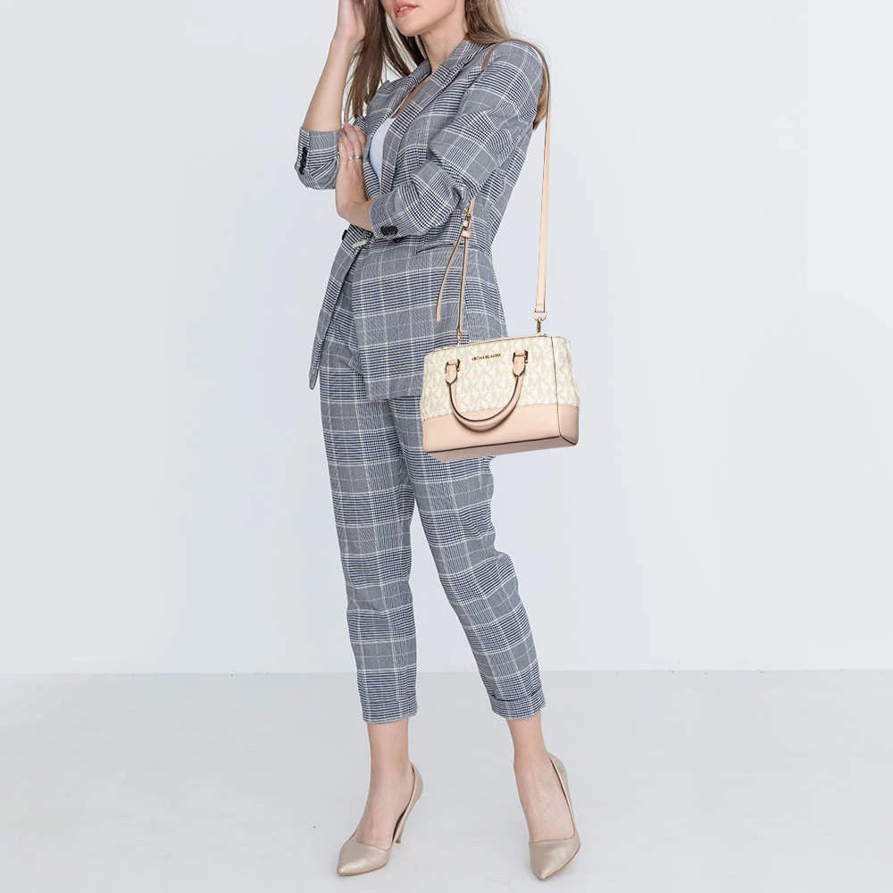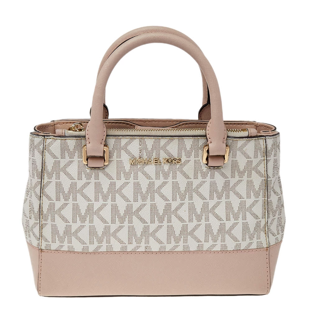 Well-structured and high on style, this top handle bag from Michael Kors deserves to be yours. It has been crafted from signature canvas and leather and styled with two top handles, a shoulder strap as well as nylon insides that have enough space to fit your essentials in. This satchel is ideal for daily use.