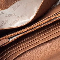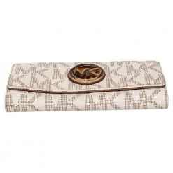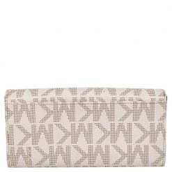 From Michael Kors comes this Fulton wallet that looks ready to assist your great style. It is crafted from white signature coated canvas and designed with a gold-tone MK logo on the front flap. It opens to a canvas and fabric interior that houses slip pockets, a zip pocket, and multiple card slots. It is sure to be an amazing buy!