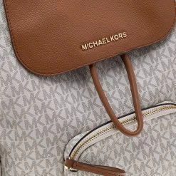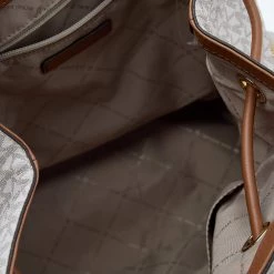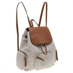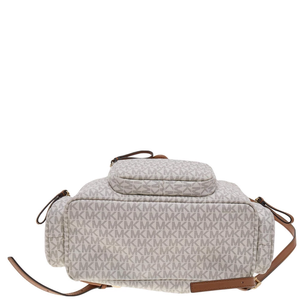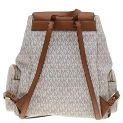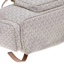 This Abbey backpack from Michael Kors will be your favorite go-to bag in no time. Practical in its structure and stylish in appearance, this backpack lets you enjoy your day out comfortably. It is made from white Signature coated canvas and leather with a gold-toned logo lettering enhancing the front. It has a nylon-lined interior.