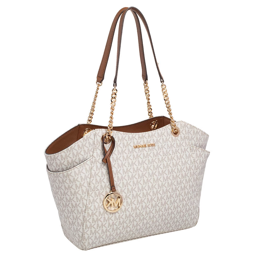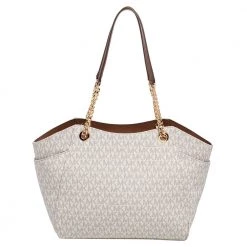 Timelessly elegant and stylish, Michael Kors’ collections capture the effortless, nonchalant finesse of the modern woman. Crafted from leather and signature canvas, this chic Jet Set Travel tote features a spacious interior. The sleek, understated silhouette is punctuated with gold-tone hardware and an MK medallion.