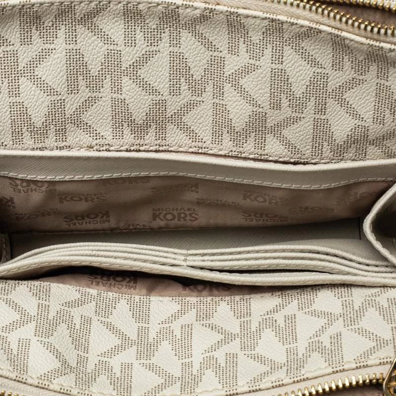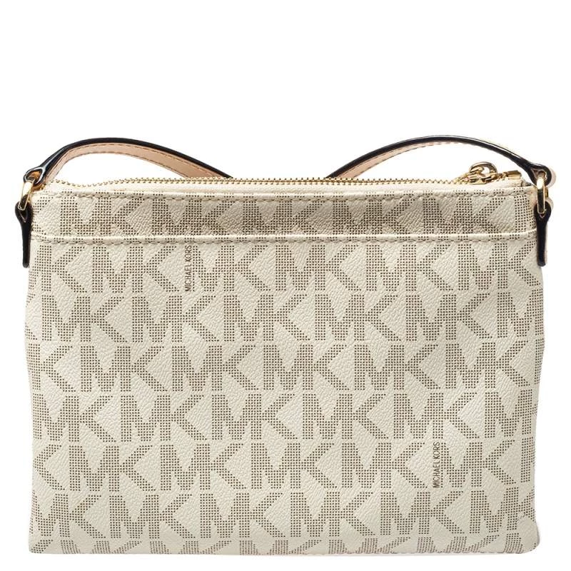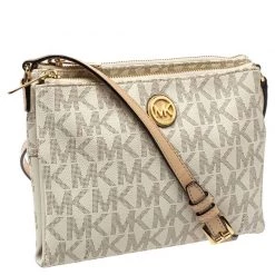 The crossbody bag from Michael Kors looks chic and is highly practical. This sleek piece is a closet essential and has enough space for your belongings. The exterior is made from monogram canvas & leather, and the interior is lined with nylon. The bag has a gold-tone logo of the brand and an adjustable strap.