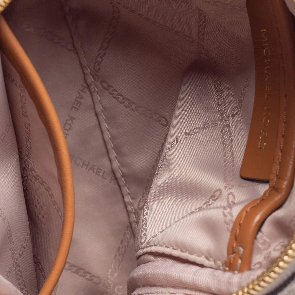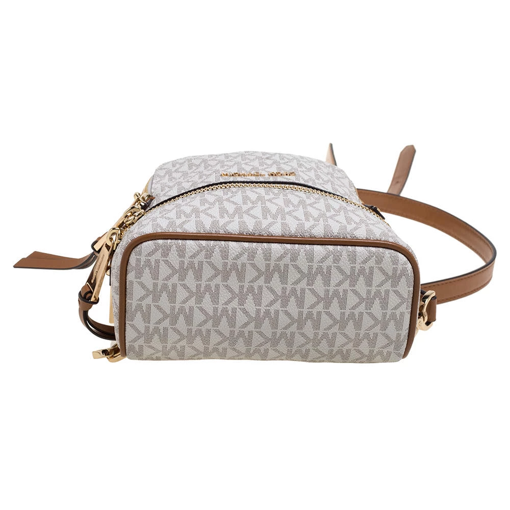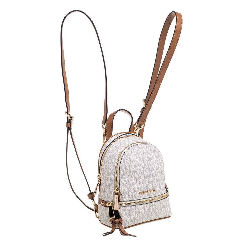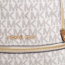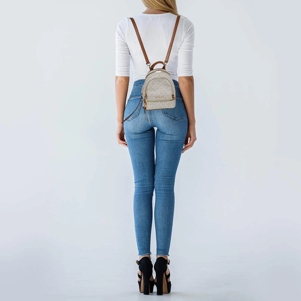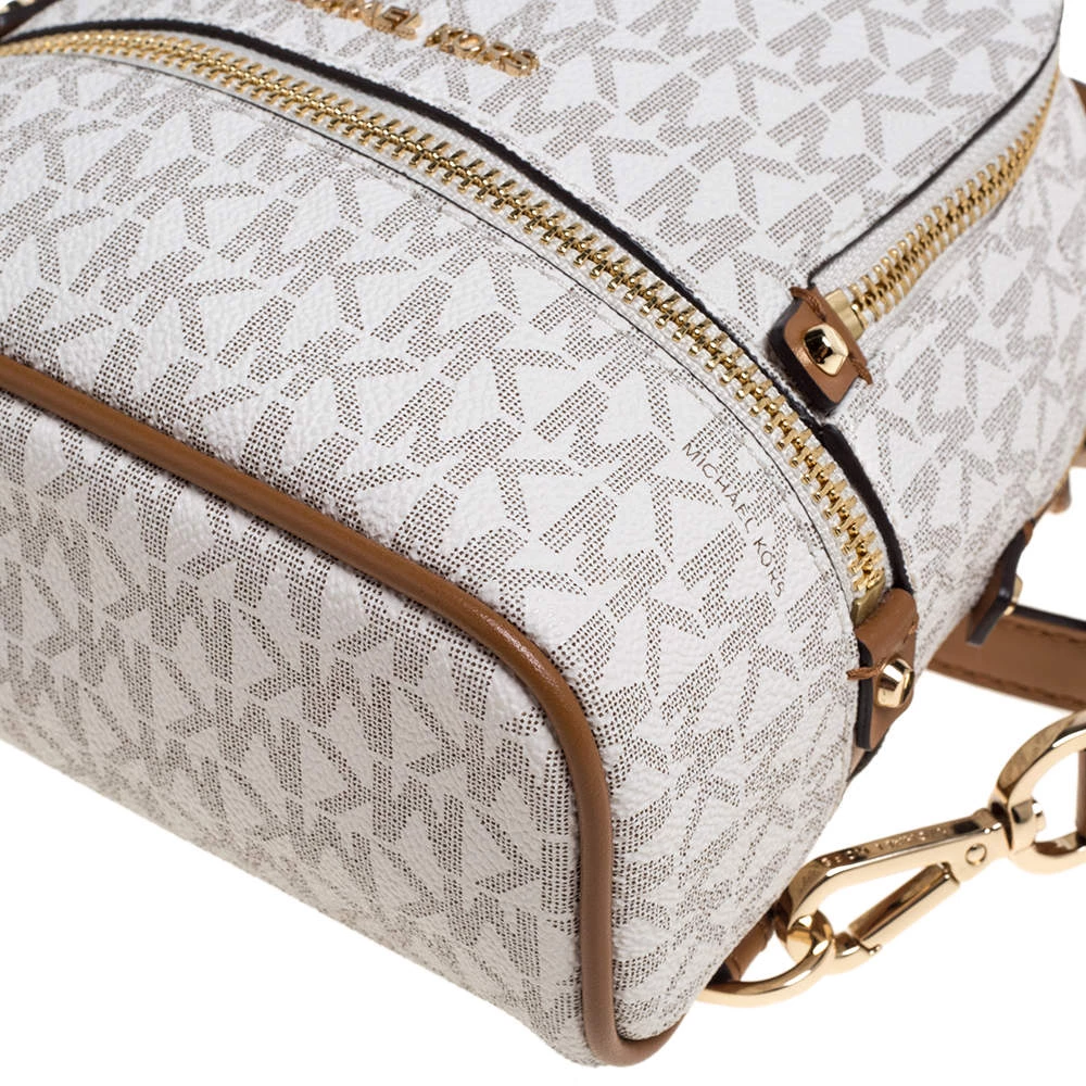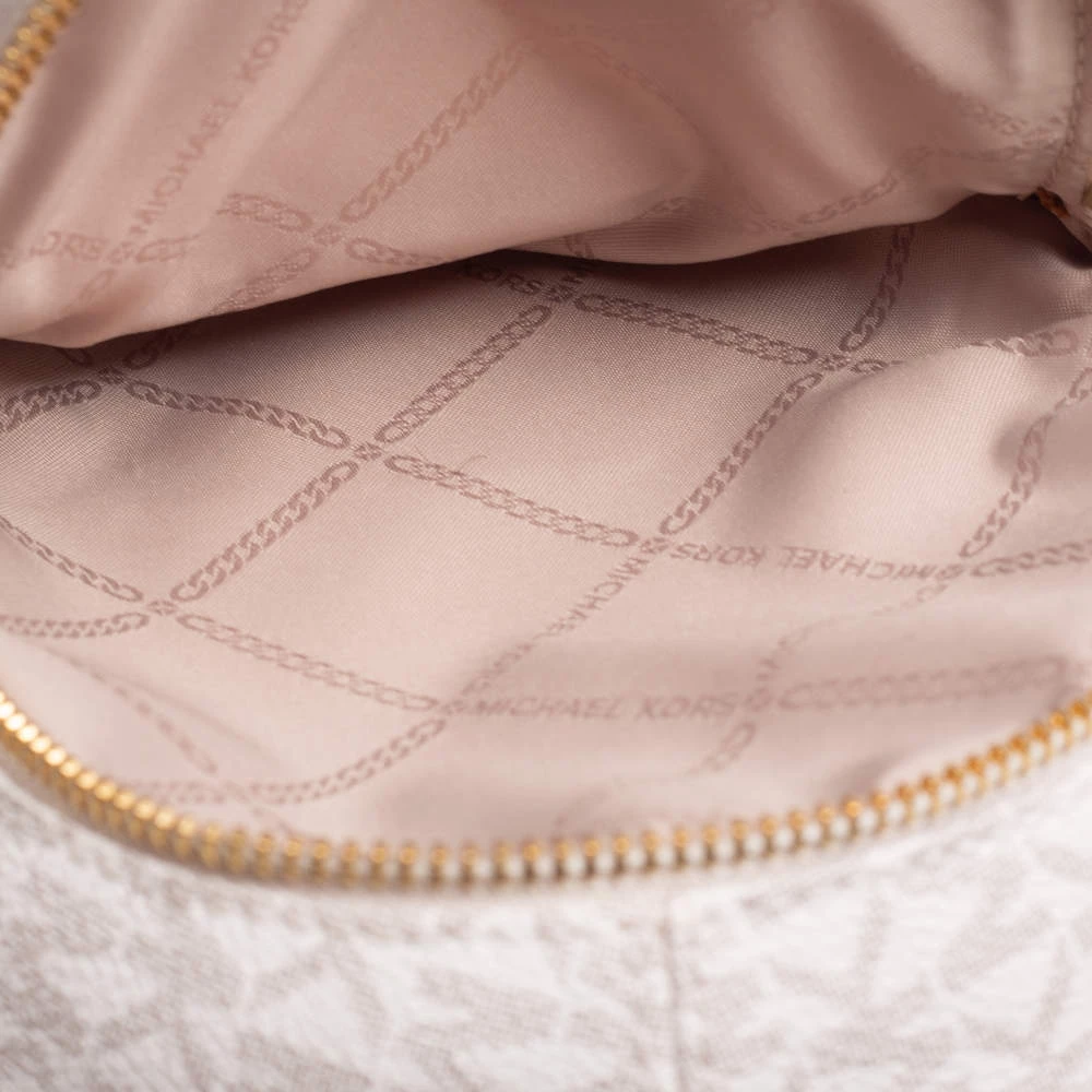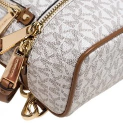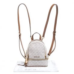 Get set to look uber stylish with this white backpack from Michael Kors. It has been crafted from signature coated canvas and leather and it flaunts zippers at the top that reveals a fabric-lined interior, a zip pocket at the front, and shoulder straps. This piece is very much in vogue, so get your hands on this today!