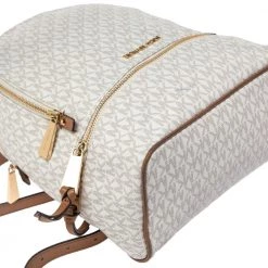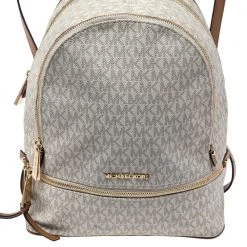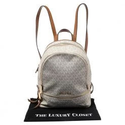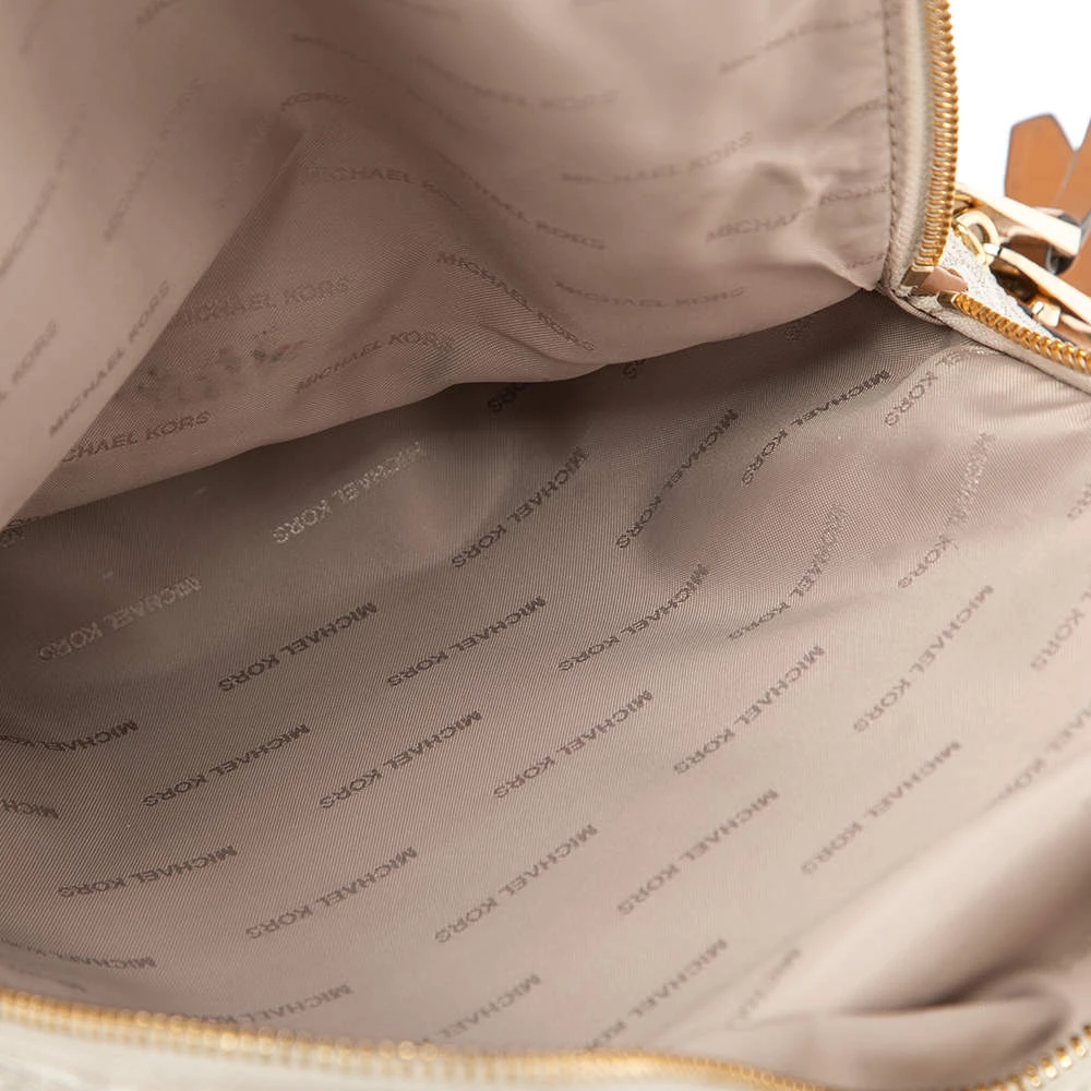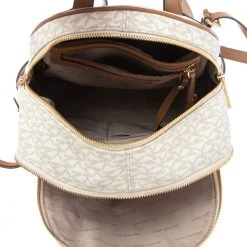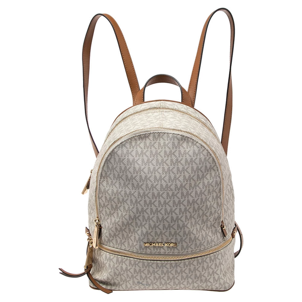 Get set to look uber stylish with this backpack from Michael Kors. It has been crafted from signature coated canvas as well as leather and it flaunts zippers on top that reveal a fabric-lined interior, a zip pocket at the front, and shoulder straps.