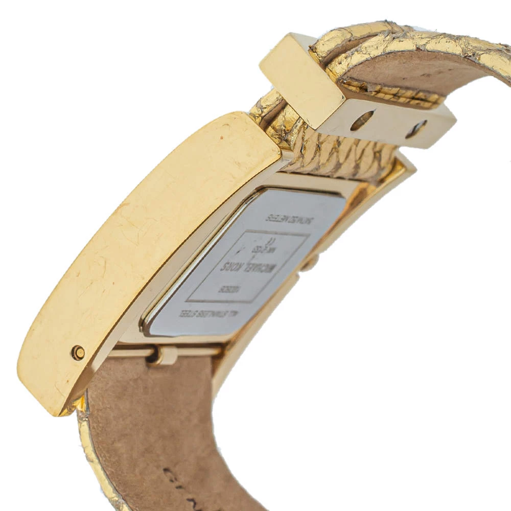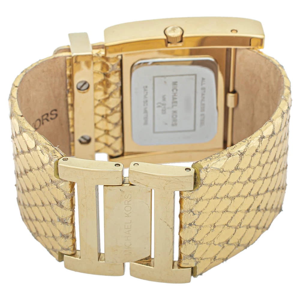 The house of Michael Kors is also loved for its extravagant watches just like this beautiful MK2133 wristwatch. Crafted in a wide gold-tone embossed leather strap and yellow gold plated stainless steel case, this eye-catching watch features a sleek and simple small gold dial to maintain a perfect balance.