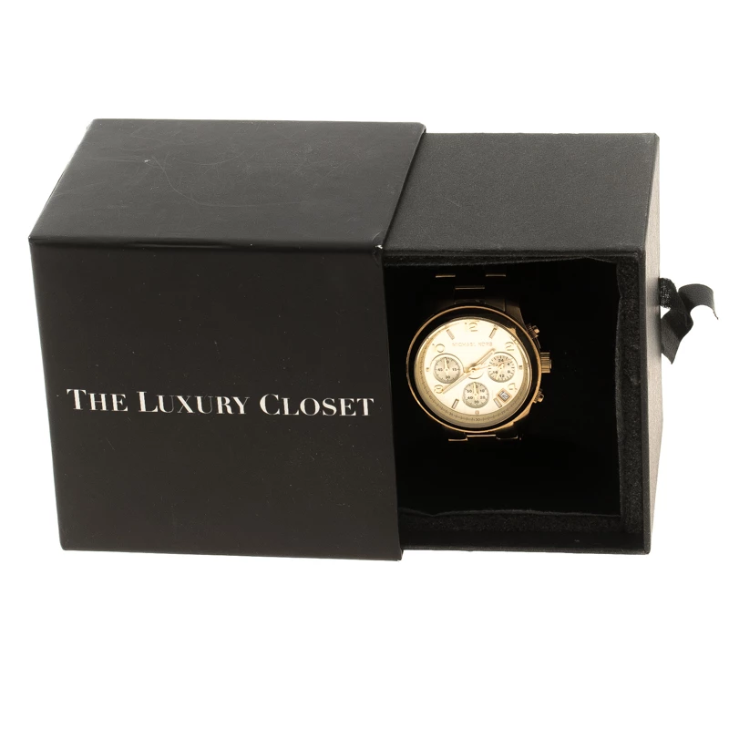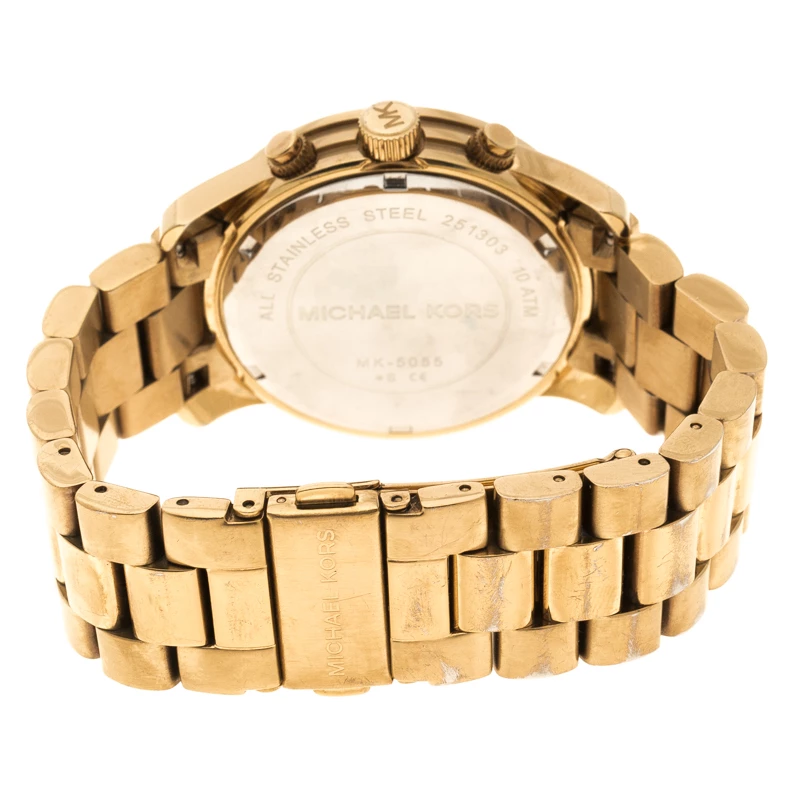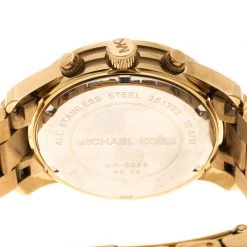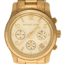 This is one creation that demands your attention. From the label of Michael Kors, this wristwatch has been crafted from stainless steel in gold-tone and detailed with a yellow dial that has Arabic numeral hour markers and three sub dials. The watch is water resistant up to 100 meters and is equipped with a date window and a clasp that has a push button.