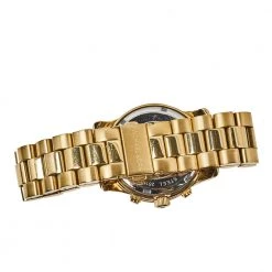 This is one creation that demands your attention. From the label of Michael Kors, this wristwatch has been crafted from stainless steel in gold-tone and detailed with a yellow dial that has Arabic numeral hour markers, a date window, and three subdials. The watch is water-resistant up to 100 meters and is equipped with a clasp that has a push button.