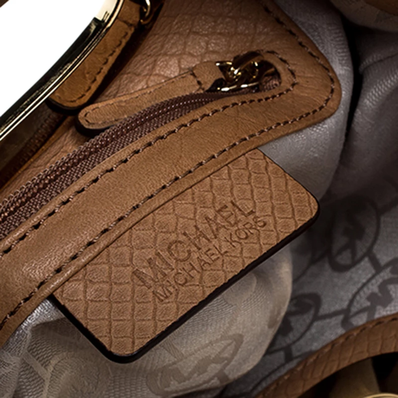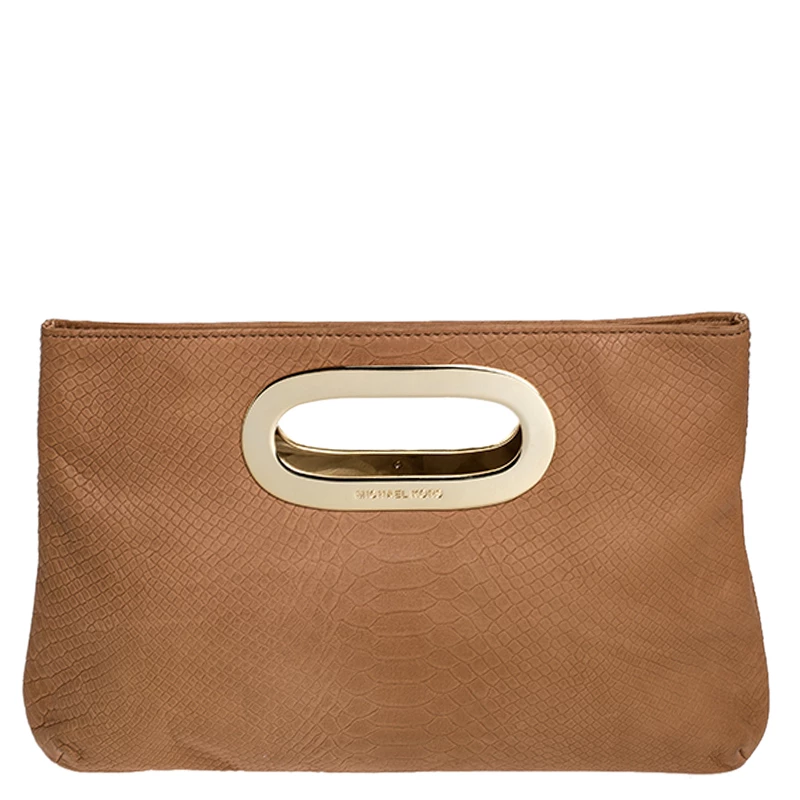 This Michael Kors Berkley clutch is sure to be an amazing addition to your closet! The beige piece is crafted from embossed leather and features dual inbuilt gold-tone handles. It opens to a fabric-lined interior that can easily hold all your essentials.