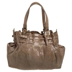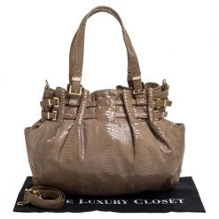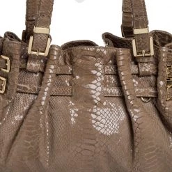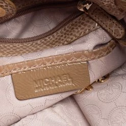 This bag from MICHAEL Michael Kors will be your indispensable companion. A fresh take on femininity, this bag is designed from python-effect patent leather in a beige hue. It has buckle details, dual handles, and a roomy interior. This shoulder bag will complement most of your attires.