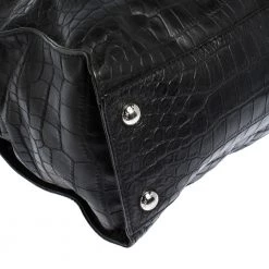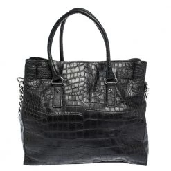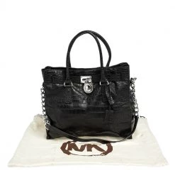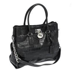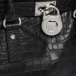 This Hamilton tote is from MICHAEL by Michael Kors. It is crafted from black croc-embossed leather and decorated with an engraved padlock on the front. The bag has two handles, a shoulder strap, and a spacious nylon interior. This creation is ideal for everyday use.