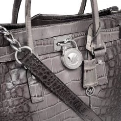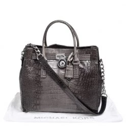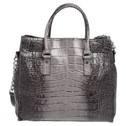 This Hamilton tote is from MICHAEL Michael Kors. It is crafted from black & grey croc-embossed leather and decorated with an engraved padlock on the front. The bag has two handles, a shoulder strap, and a spacious canvas interior. This creation is ideal for everyday use.
