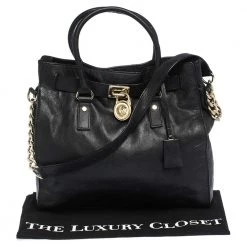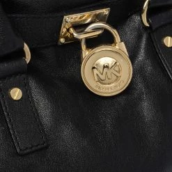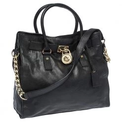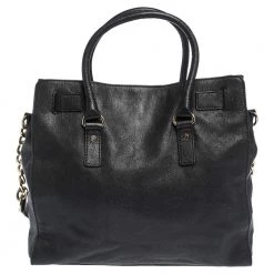 This stylish Hamilton tote from MICHAEL Michael Kors is a worthy buy. It has been crafted from leather in a classy black shade and decorated with an engraved padlock on the front. The bag has two handles, a shoulder strap, and a spacious fabric interior. This creation is ideal for everyday use.