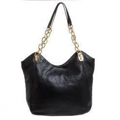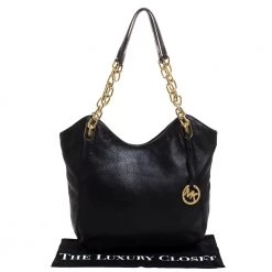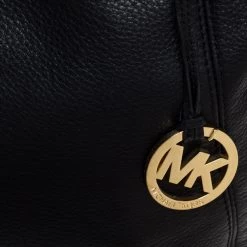 Crafted from leather, this black Michael by Michael Kors bag opens to a spacious nylon-lined interior housing a zip pocket. The bag is equipped with dual top handles and a gold-tone MK charm. Swing this beauty wherever you go to lend your outfit the appropriate measure of class and style.