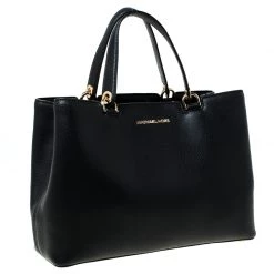 Elevate your style with this gorgeous tote from MICHAEL Michael Kors. Crafted from black leather, the bag features dual top handles, a shoulder strap, and gold-tone brand logo on the front. It has a spacious nylon-lined interior that will hold all your belongings. This beauty is totally worth the splurge!