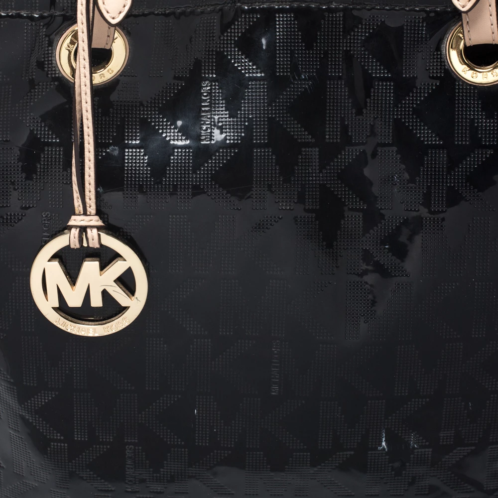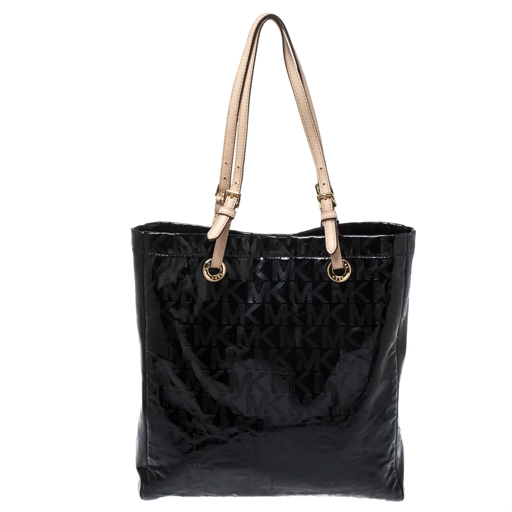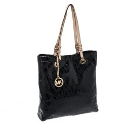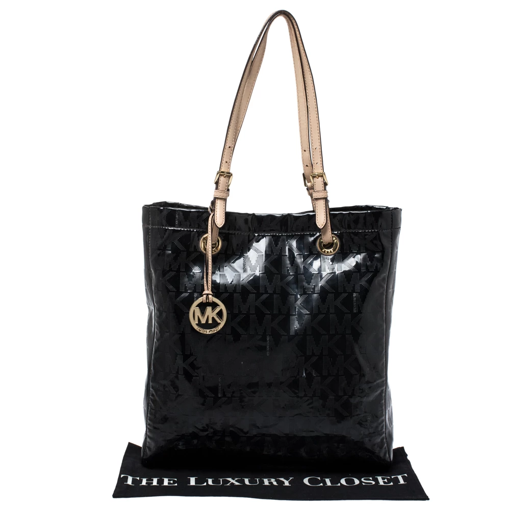 A perfect bag to take for shopping or otherwise, this Jet Set North South Tote is crafted from black monogram patent leather. It features dual handle straps and a Michael Kors charm and has a spacious nylon-lined interior. This beauty is totally worth flaunting.