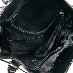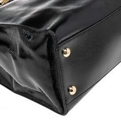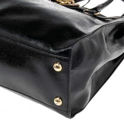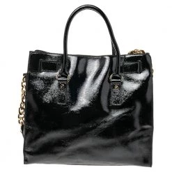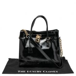 This Hamilton tote is from MICHAEL Michael Kors. It is crafted from black patent leather and decorated with an engraved padlock on the front. The bag has two handles, a shoulder strap, and a spacious nylon interior. This creation is ideal for everyday use.